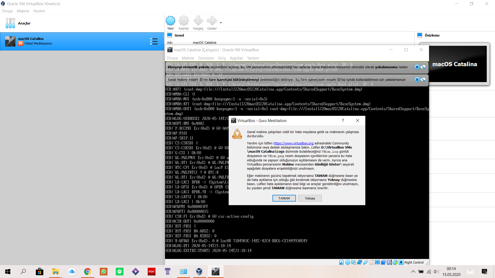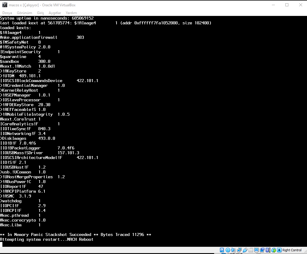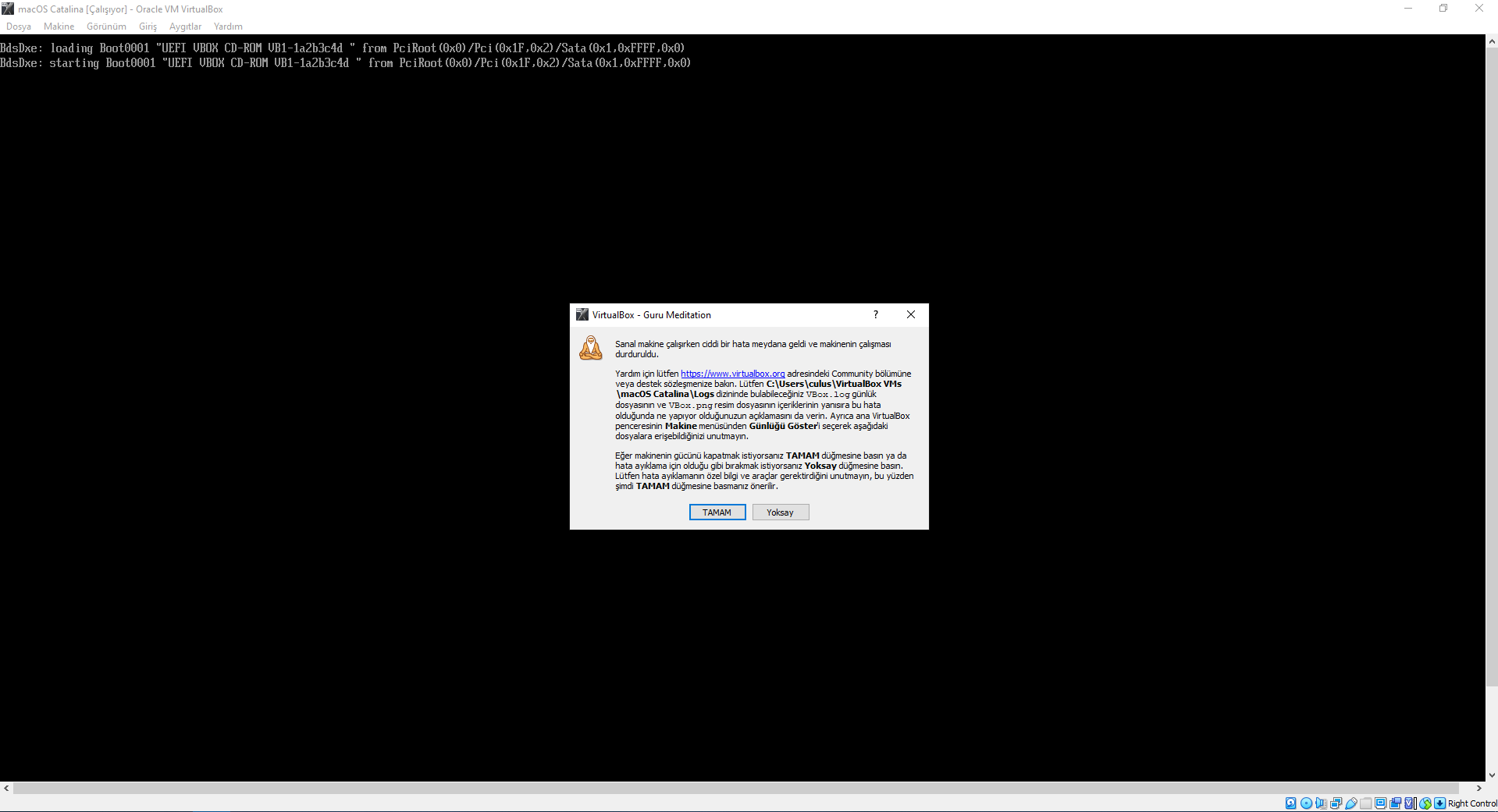Arkadaşlar macOS Catalina VirtualBox’da her 10 dakikada bir çöküyor. Sorunu bilen var mı?