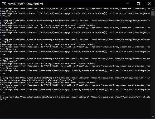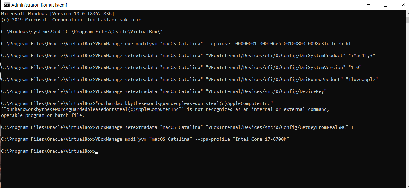 Not: Bu komut satırındaki “macOS Catalina” Sanal Makinenize verdiğiniz isimdir.