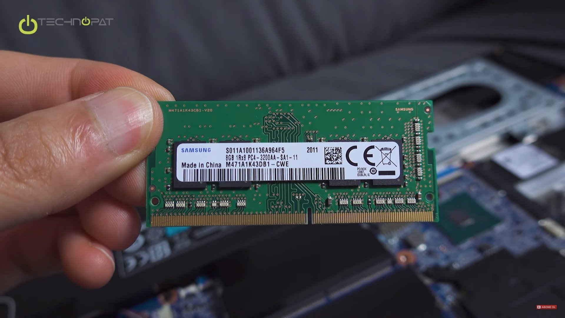 Bize gelen konfigürasyonda 8GB DDR4 3200Mhz hızında çalışan bir bellek bulunuyor. Bu modül 2933Mhz’de çalışacak şekilde ayarlanmış. Bilgisayarın içine baktığımızda Samsung marka tek 8 GB’lık SODIMM bellek modülüne sahip olduğunu görüyoruz. İstendiğinde ikinci yuvaya bir 8 GB daha takılıp hem kapasite artırılabilir, hem de belleğin çift kanallı çalışması sağlanabilir. Neyse ki 2 adet 4 GB modül yerine 1 adet 8 GB kullanılmış, bu da bellek yükseltmesini daha kolay ve daha az maliyetli yapmış.