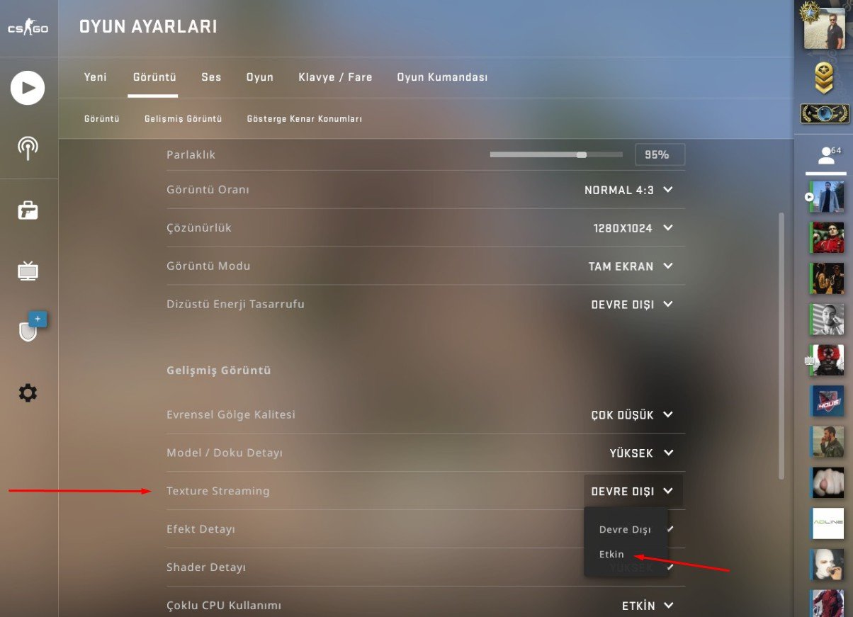 - Buradan Texture Streaming ayarını bulduktan sonra Etkin seçeneğini işaretleyip oyuna geçebilirsiniz.