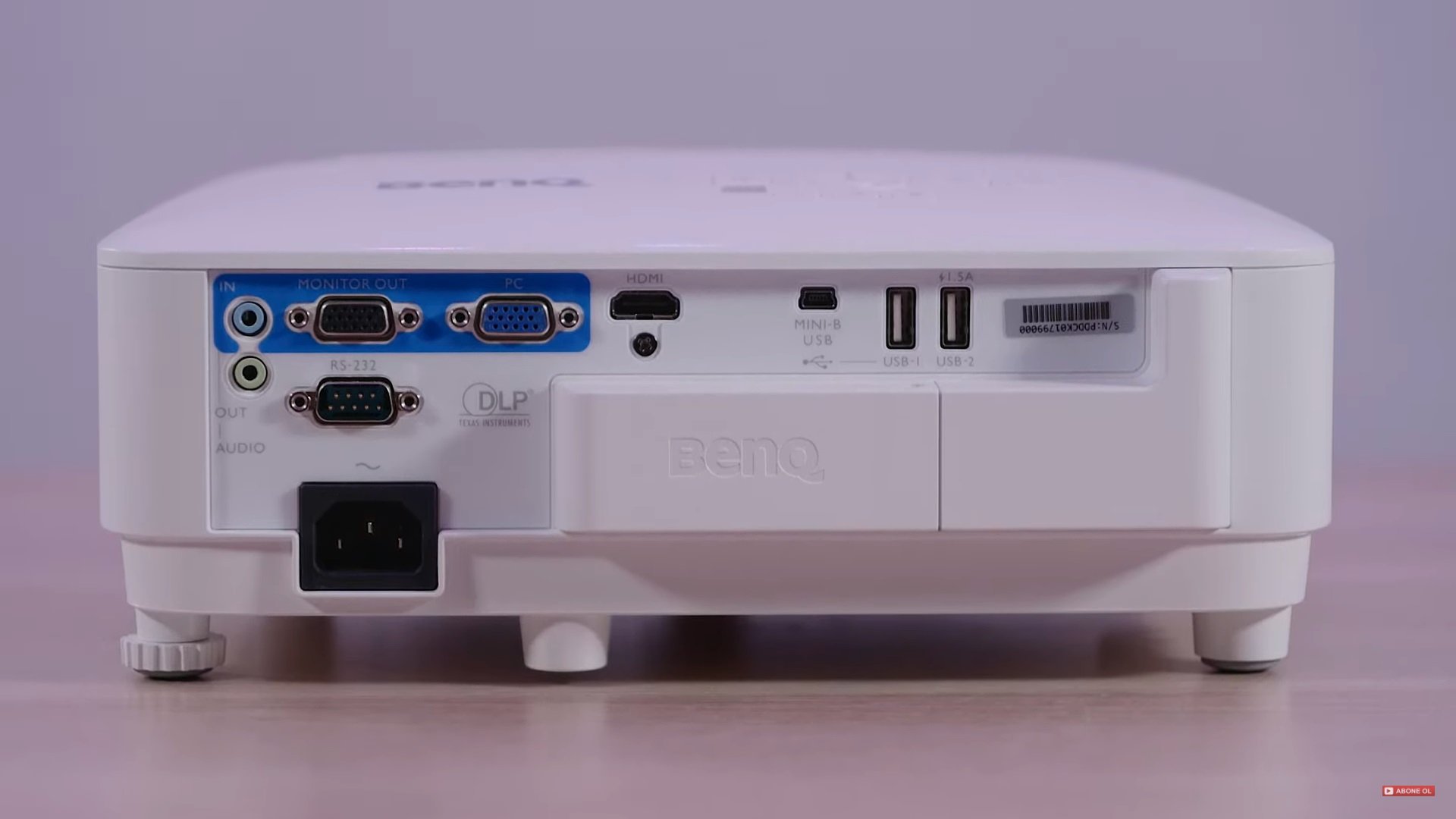Arka bağlantılara baktığımızda tek bir HDMI 1.4a bağlantısı, bir adet VGA giriş, bir adet VGA çıkış, iki adet USB Tip-A görüyoruz. Bir tanesi 1.5 amper ile aksesuarlara güç beslemesi yaparken, diğeri kablosuz klavye/ takmak için kullanılabilir. Ayrıca ses giriş ve çıkışı için bir çift 3.5 mm ses bağlantısı da var. Mini USB portu ve RS-232 bağlantısı ise servis için yararlı.