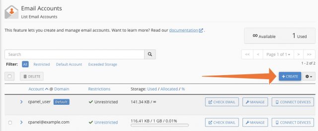 İlk önce yeni bir e-posta hesabı oluşturalım. cPanel’de, ana sayfa menüsünün E-Mail bölümünde bulacağınız Email Accounts arayüzüne gidin.