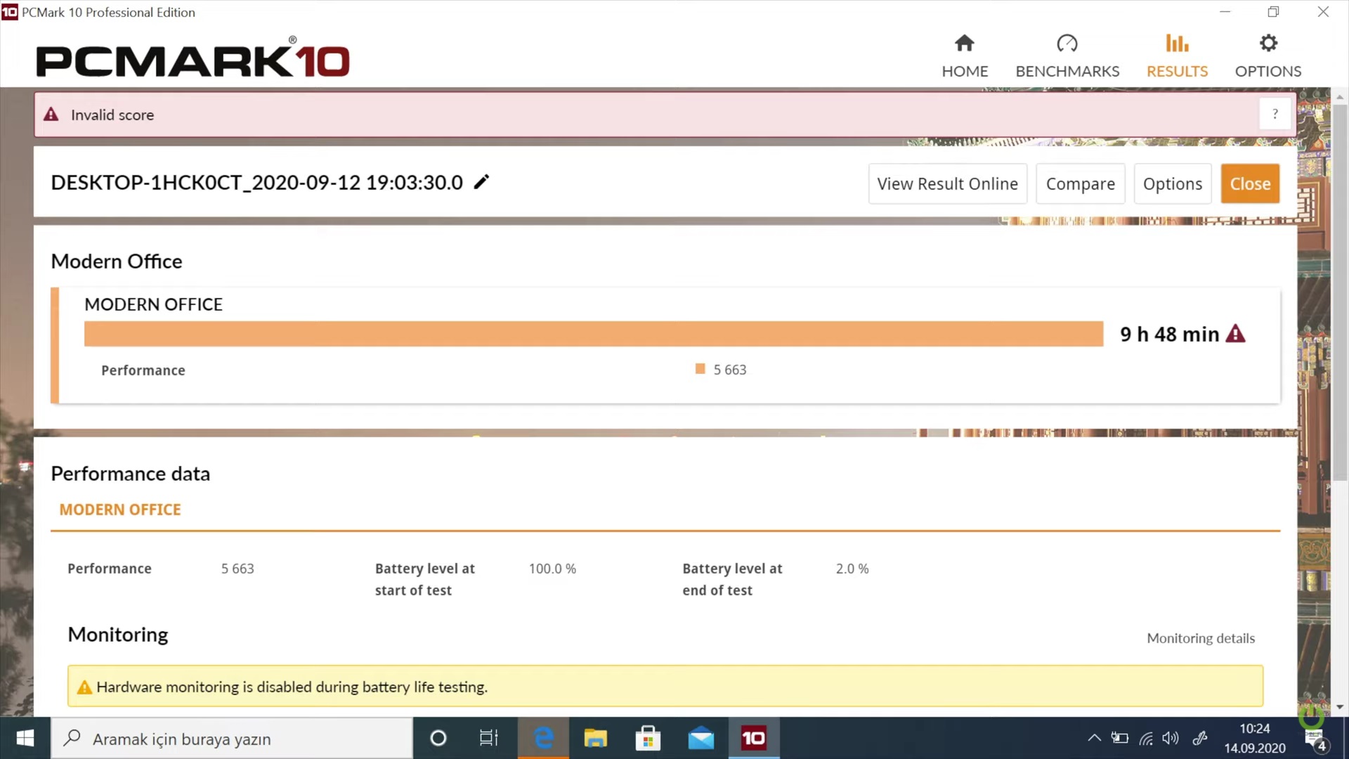 EXA 14” Elite laptop için ürün sitesinde 10 saatin üzerinde bir pil ömrü sunduğu söyleniyor. Biz de test edip doğru mu değil mi baktık. Yüzde 50 ekran parlaklığı, yüzde 20 ses seviyesi, 1. seviyede açık klavye ışıklandırması ve pil ayarlarında maksimum pil ömrü olacak şekilde PCMark batarya testi yaptık.