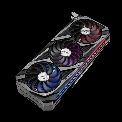 ROG Strix modeli, 3080 ile benzer şekilde siyah ve gri bir tasarıma sahipken, üç fanın altında da RGB aydınlatmaya yer verilmiş. RTX 3070 ve 3080 modelleri arasındaki tek göze çarpan fark güç konektörü gibi görünüyor. Üst modelde üç adet 8 pin kullanılırken RTX 3070’de 2 tane güç bağlantısı konumlandırılmış. Son olarak oyun modunda 1725 MHz ve OC modunda 1755 MHz’e kadar çıktığını not düşelim.