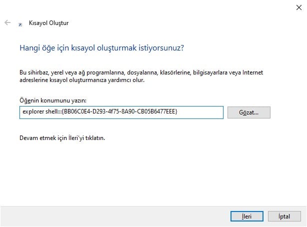 Sonrasında İleri diyerek devam edin. Karşınıza gelecek olan diğer ekranda ise (aşağıdaki örnek görseldeki gibi) Kısayola hangi adı vermek istiyorsunuz? şeklinde bir soru sorulacak. Kafanızın karışmaması için direkt olarak sistem adını atamanızı tavsiye ediyoruz.