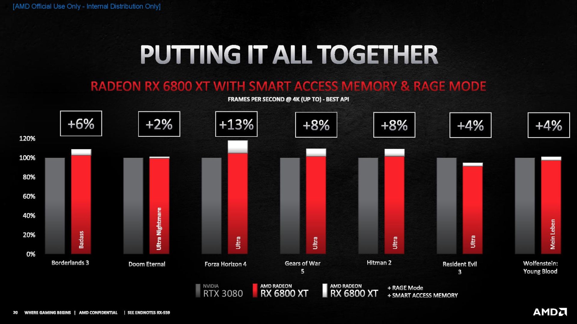 Bunun yanında Smart Access Memory ve Rage Mode ile birlikte yapılan testlerde %2 ile %13 arasında daha iyi sonuçlar elde edilmiş.