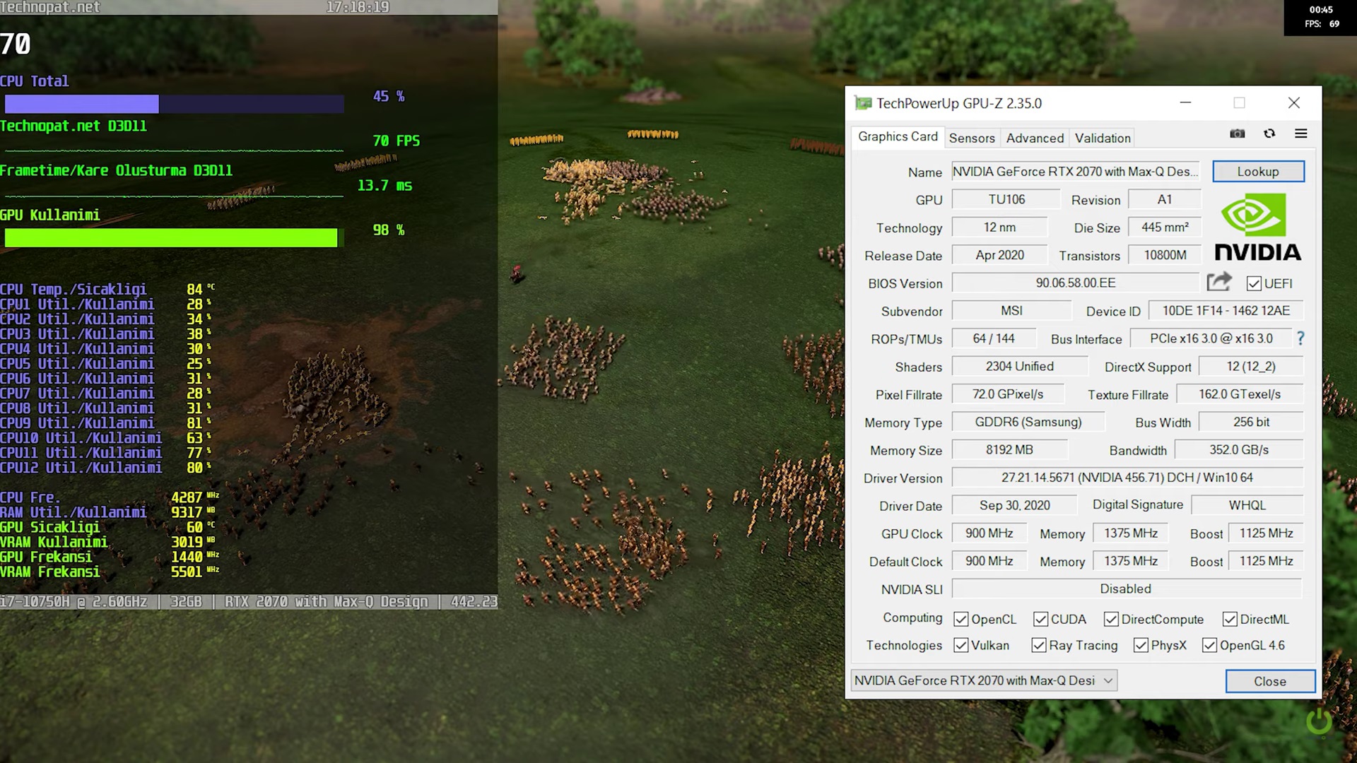 | Total War: Three Kingdoms | 1080p | Extreme | 69.4 | – | – |