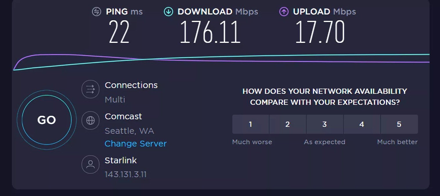 ABD’nin farklı yerlerinde yapılan bazı erken hız testlerine göre, download (indirme) hızının 100 ile 203 Mbps arasında seyrettiği söyleniyor. Upload (yükleme) hızı ise 15 ile 33 Mbps arasında. Bu arada gecikme değerlerinin 20 ile 45 ms arasında değiştiği de kaydedildi.