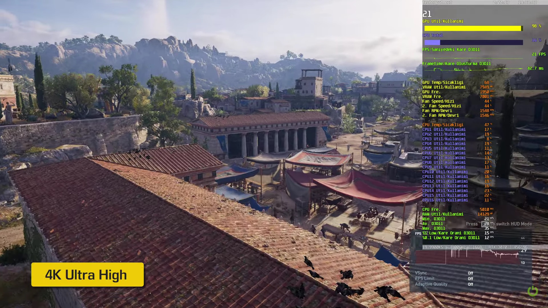 | 1- Assassin’s Creed Odyssey | 4K Ultra High | Min. 11 Ort. 24 Maks. 44 %1 12 %0.1 12 | 67 | 48 |