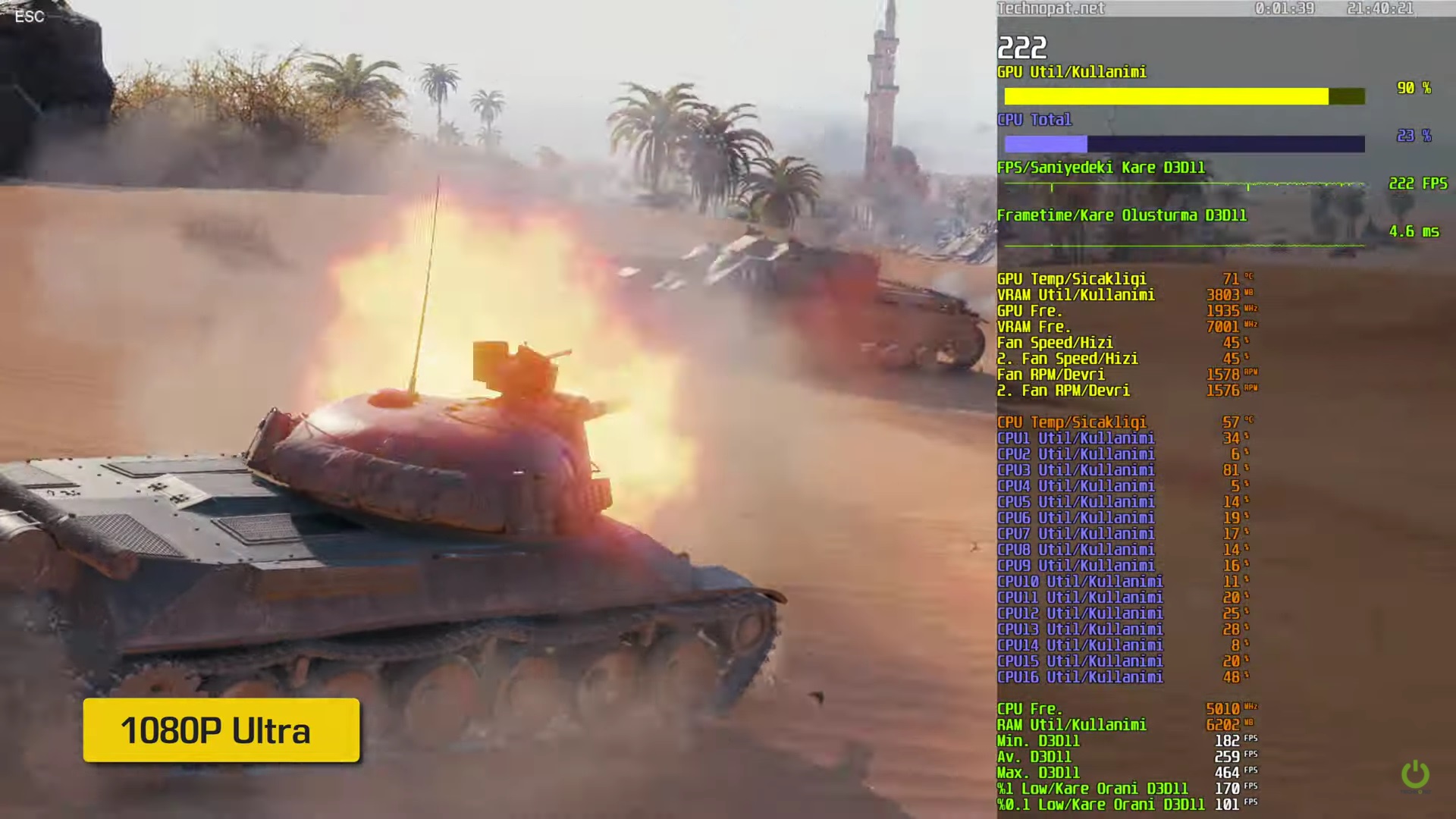 | 11- WoT: Encore | 1440p Ultra | Min. 128 Ort. 190 Maks. 510 %1 127 %0.1 117 | ||