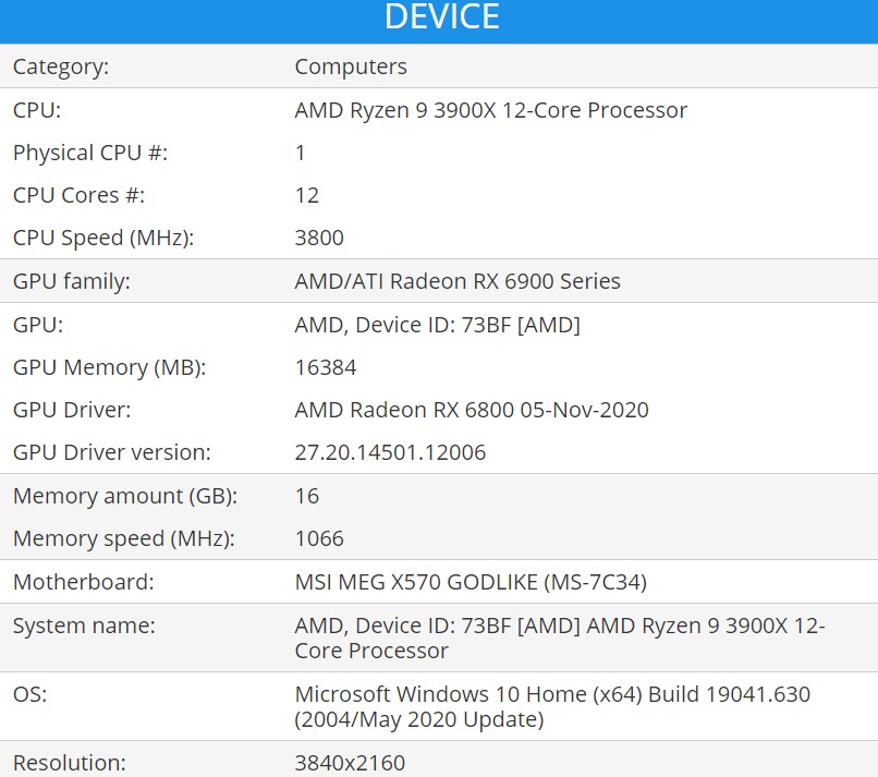 Ayrıntılı testler için kısa bir süre kalmış olsa da VideoCardz tarafından sızdırılan Basemark sonuçlarına bir göz atalım. Özellikle belirtmek gerekirse, Basemark veritabanı bu GPU’yu RX 6900 olarak listelemiş olsa da testlerin RX 6800’e ait olduğu söyleniyor. Bunun sebebi ise muhtemelen her ikisinin de Navi 21 GPU’yu temel alıyor olması.