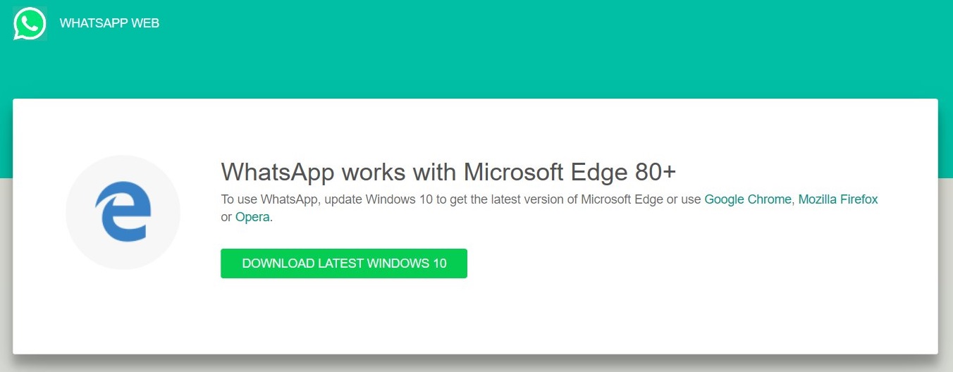 Eski sürüm Microsoft Edge tarayıcı kullanan kişiler, WhatsApp Web’e erişmeye çalıştığında bir uyarı mesajıyla karşılaşabilir.