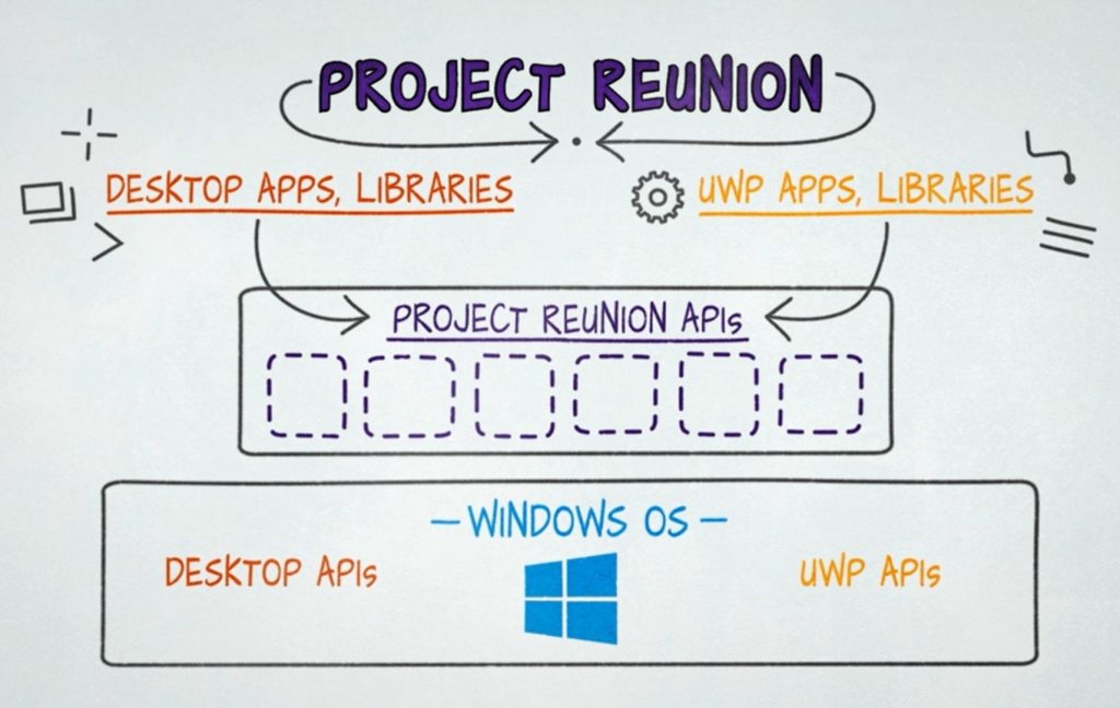 Redmond devi artık 0.1 ön izlemesinin piyasaya sürülmesiyle planlarını uygulamaya geçirmeye başlıyor. Temel olarak bakarsak Project Reunion, Windows geliştiricilerinin uygulama yazmak için kullandıkları iki ana uygulama arabirimi (API’ler) arasındaki boşluğu dolduracak bir dizi yazılım aracını temsil ediyor.