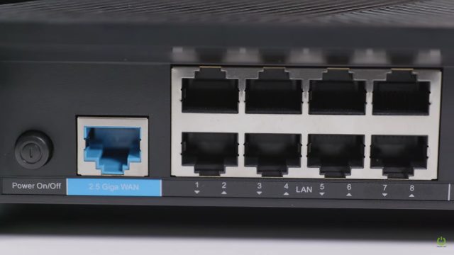 Bu 8 yuvanın hemen yanında 2.5 Gbit  hızında WAN yuvası var. Buraya da çok yüksek hızlarda internet bağlantısı sağlayan bir modem takabiliyorsunuz.