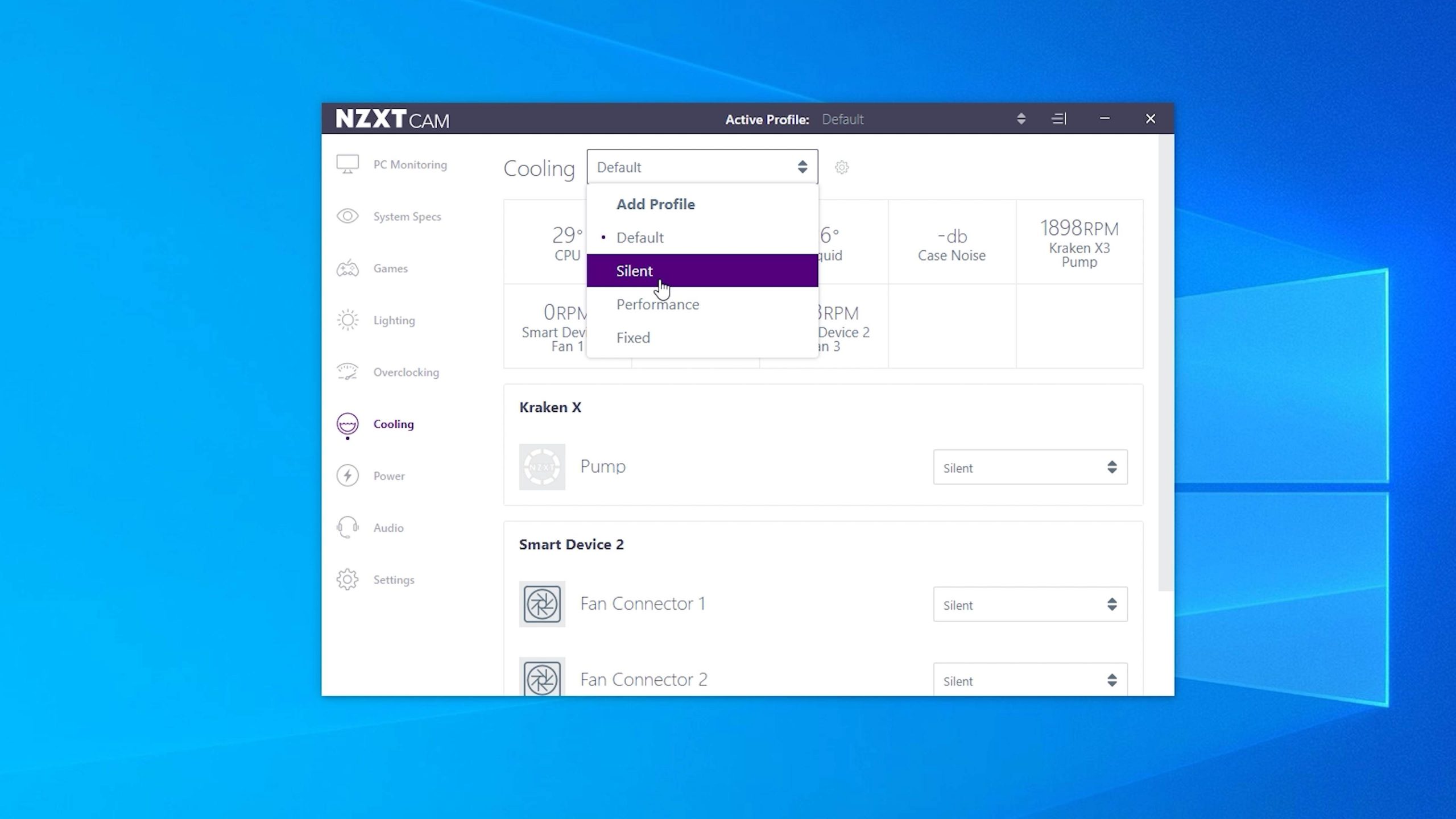 Tabiki tahmin edebileceğiniz gibi Cam’in tek işlevi aydınlatmayı kontrol etmek değil. Uygulamayla fan ve pompa devrini ister sessiz ve performans gibi öntanımlı ayarlara getirebiliyorsunuz, isterseniz de ayrı ayrı bunlara ince ayar çekebiliyorsunuz. Hatta pompaya ayrı eğri, fanlara ayrı eğri atayabiliyorsunuz.