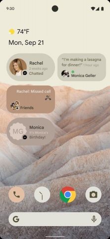 Son olarak, Android’in widget seçimine yeni bir ekleme gibi görünen bir şeye sahibiz. Apple yakın zamanda iOS’a widget eklediğinde, bazı yönlerden Android’in uygulamasından daha iyi olduklarını görmüştük. Google’ın widget’larda büyük bir revizyon planlayıp planlamadığını bilmesek de, en azından birkaç değişiklik yapmayı planlıyor gibi görünüyorlar. Birkaç ekran görüntüsünde, Android 12’de son mesajları, cevapsız aramaları veya etkinlik durumlarını vurgulayabilecek yeni bir “Görüşmeler” widget’ı görebiliriz. Gösterilen pencere aracı küçük ve yalnızca bir seferde en küçük boyutunda bir mesaj/çağrı/durum göstermeye yetecek kadar büyük görünüyor.