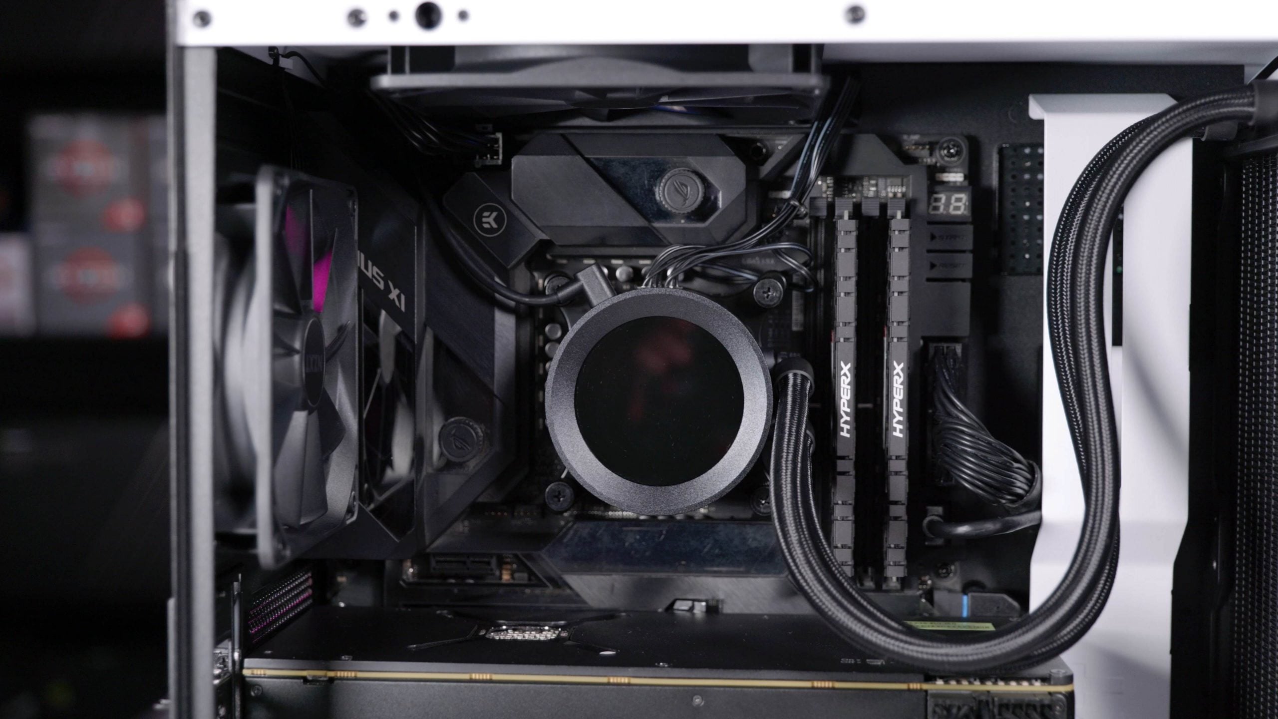 Kullanılan fanlar NZXT’nin AER P140 modeli, 500-1800RPM devir hızlı ve PWM destekli. Fan kabloları kılıflanmış ve soğutucu Asetek’in 7. nesil pompasıyla geliyor.