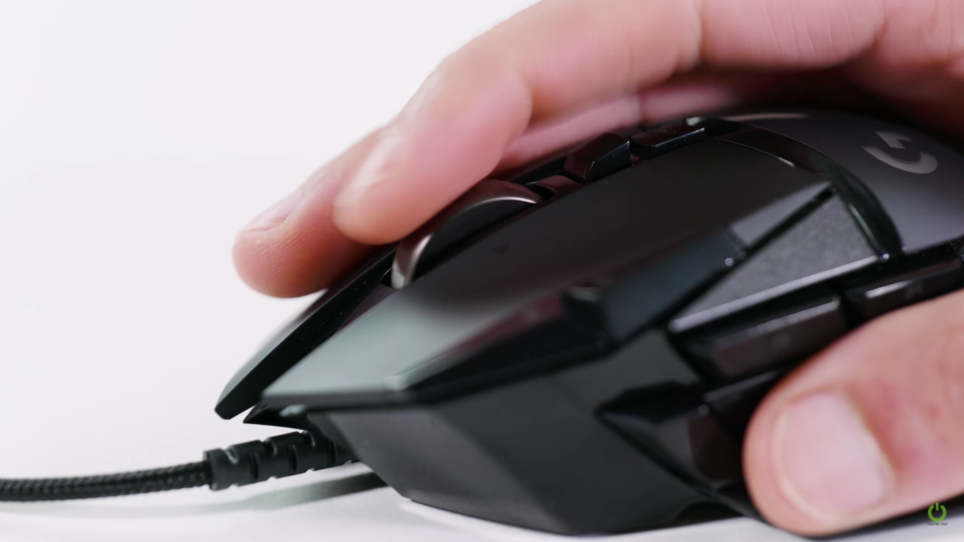Logitech G502 modelinin “palm grip” tutuşa uygun olduğunu görüyoruz. Kaymanın önüne geçmek için yanlarda serçe parmak ve başparmağın oturduğu kısımlara pürüzlü plastik doku uygulanmış.