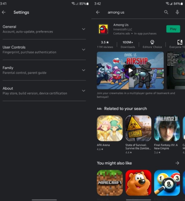 Ancak, yeni arayüz tasarımıyla beraber sol üst kısmında yer alan hamburger menü tasarımını kaldıran firma, bunun yerineyse hemen yukarıdaki görselden de görebileceğiniz gibi sağ üst kısma kullanıcıların profil fotoğrafını ekliyor. Kullanıcılar ise sağ üst kısımda yer alan profil fotoğraflarına tıklayarak uygulamalara, oyunlara ve ödeme yöntemleri gibi bilgilere erişim sağlayabiliyor.
