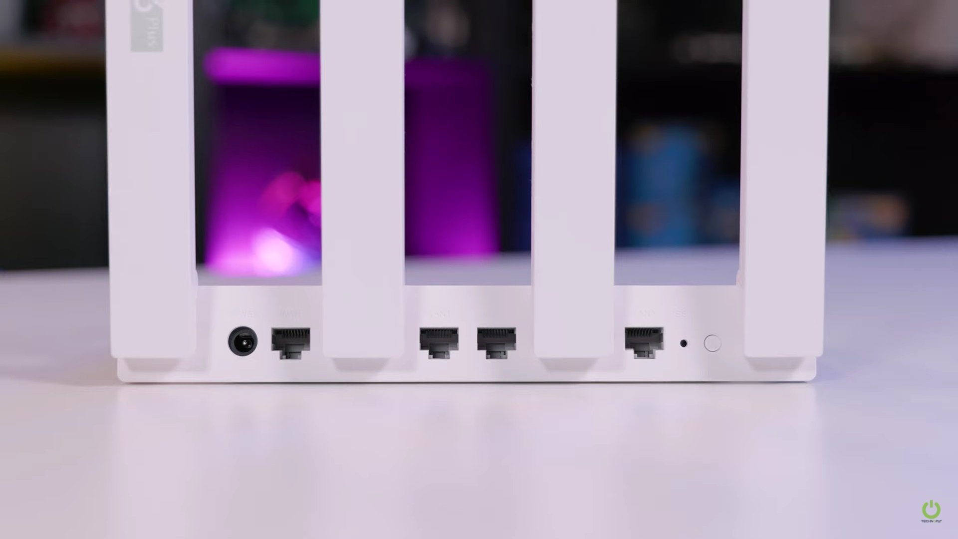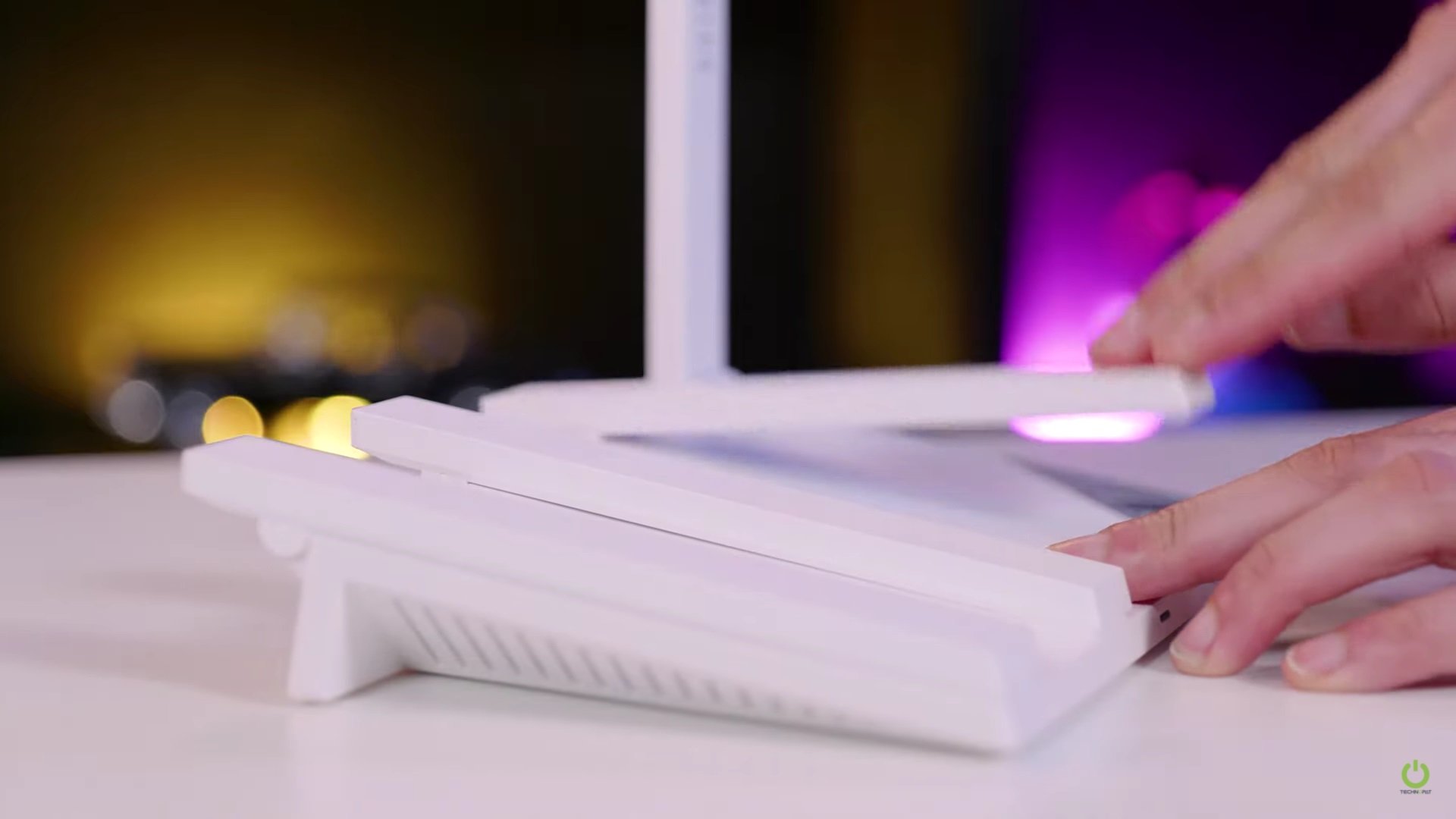 WPS ile eşleştirme tuşu yönlendiricinin üzerinde, tam ortada duruyor. Diğer yuva ve tuşlar ise yönlendiricinin arkasında bulunuyor. Burada güç tuşu, sıfırlama tuşu, 3 adet Gigabit ethernet yuvası ve bir adet Gigabit WAN yuvası var.