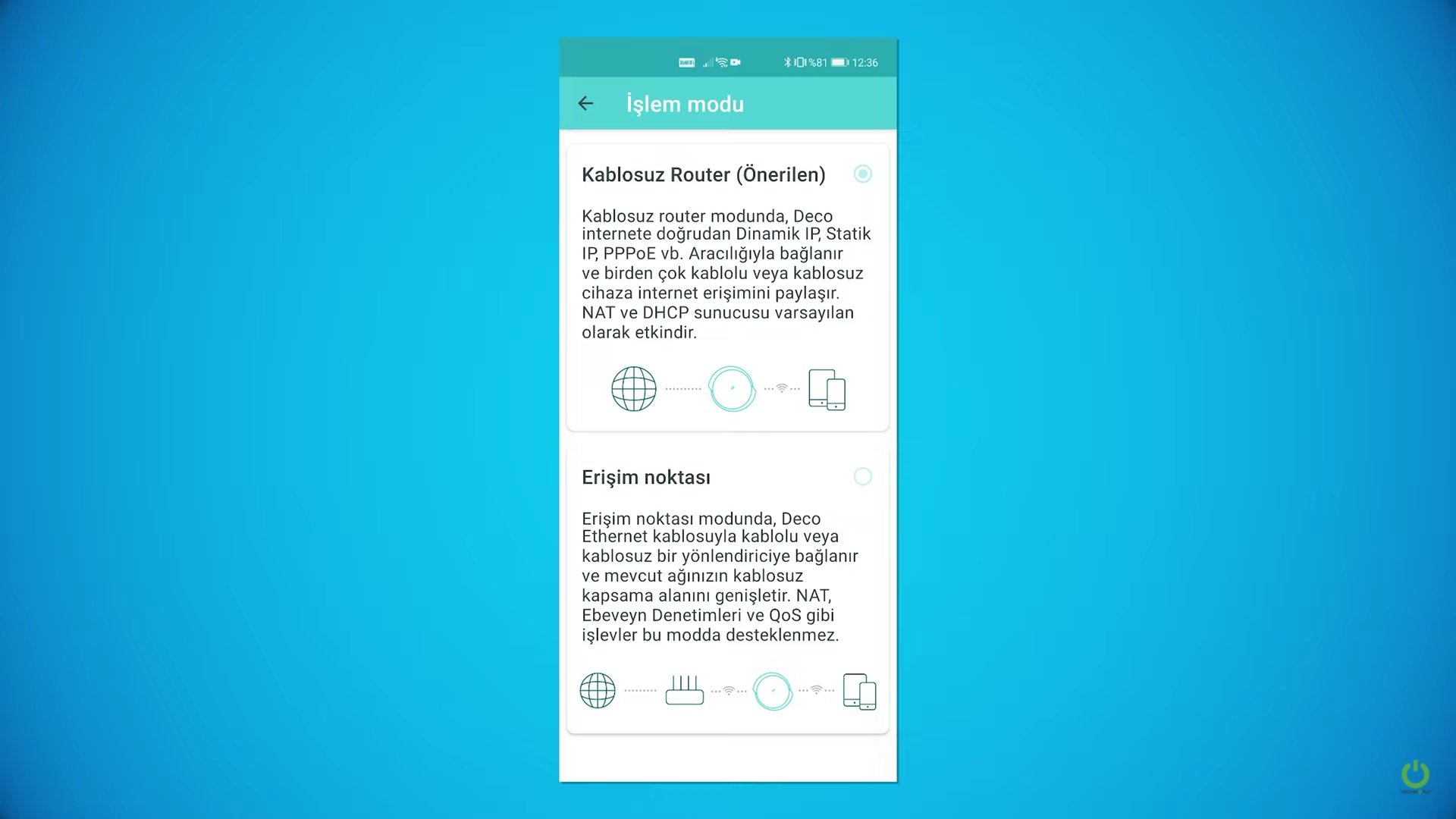 Deco X90 bir router veya access point olarak çalışabiliyor. Yani servis sağlayıcınızdan ethernet kablosuyla aldığınız interneti direk Deco X90’a bağlayıp internete bağlanabiliyorsunuz.