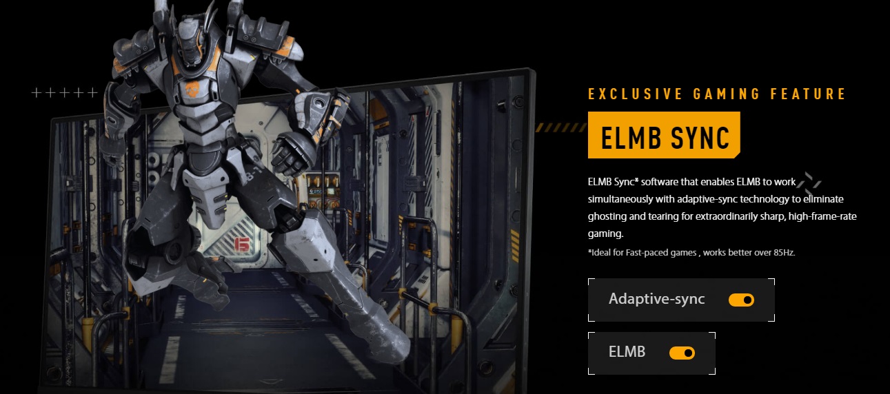 Bu monitörde ayrıca FreeSync Premium ve NVIDIA G-Sync teknolojileri destekleniyor. ASUS, algılanan hareket bulanıklığını gidermek amacıyla geliştirdiği ELMB teknolojisini de kullanmış. Bununla birlikte monitörün yenileme hızını dinamik olarak değiştiren “variable overdrive” ayarı da mevcut. Bu bağlamda hareket bulanıklığını daha da azaltmak için mevcut kare hızına göre ayarlama yapılabiliyor.