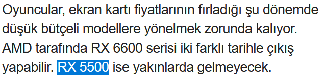 Oyuncular, ekran kartı fiyatlarının fırladığı şu dönemde düşük bütçeli modellere yönelmek zorunda kalıyor. AMD tarafında RX 6600 serisi iki farklı tarihle çıkış yapabilir. RX 5500 ise yakınlarda gelmeyecek.