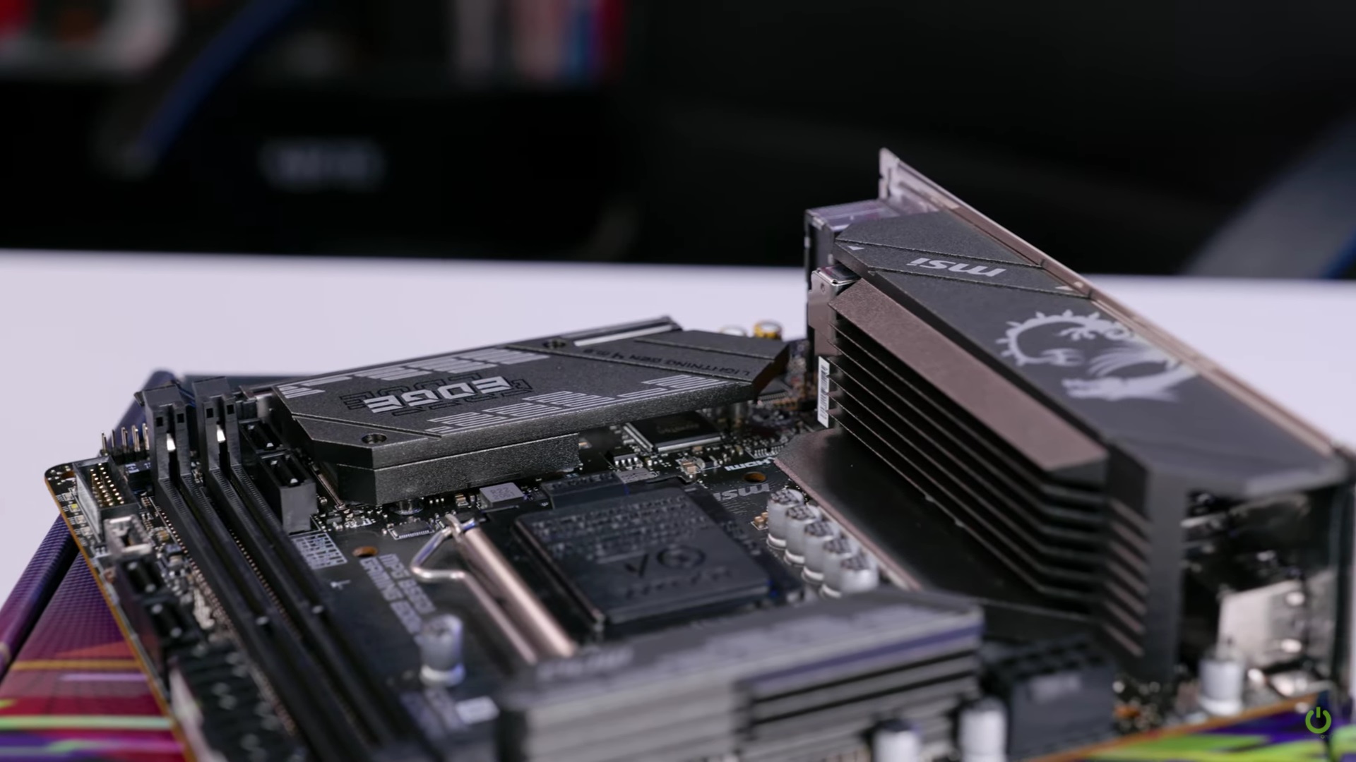 Soketin altındaki yuvaya baktığımda güney köprüsünün soğutucusunun da burada olduğunu gördüm. Dolayısıyla yüksek performanslı SSD’leri buraya takmak ısınmalarına sebep olacaktır. Bence MSI buradaki güney köprüsü ve m.2 için bütünleşik aktif bir soğutma ya da kasa içi hava sirkülasyonundan daha iyi faydalanması için üzerinde derin kanallar olan bir pasif soğutma kullanabilirdi. Zira AMD işlemciler için tasarlanan MSI B550I Gaming Edge Wi-Fi’a baktığımda aktif bir soğutma görüyorum.