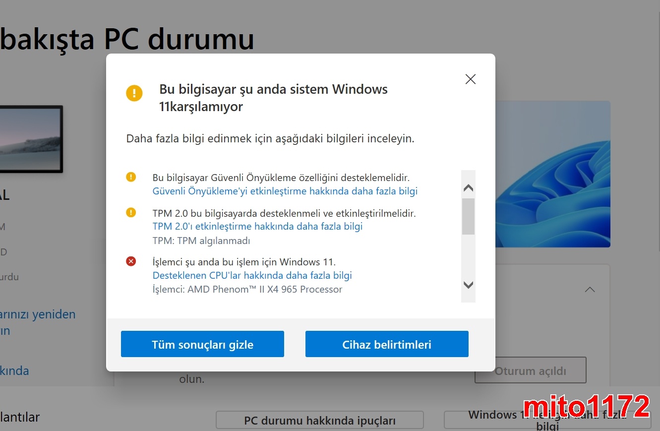 Tekrar gelelim TPM 2.0 desteğine. Uygulamanın eski sürümünde sistem “Bu işlemci Windows 11 için desteklenmiyor” gibi bir uyarı veriyordu ve test başarısız oluyordu.