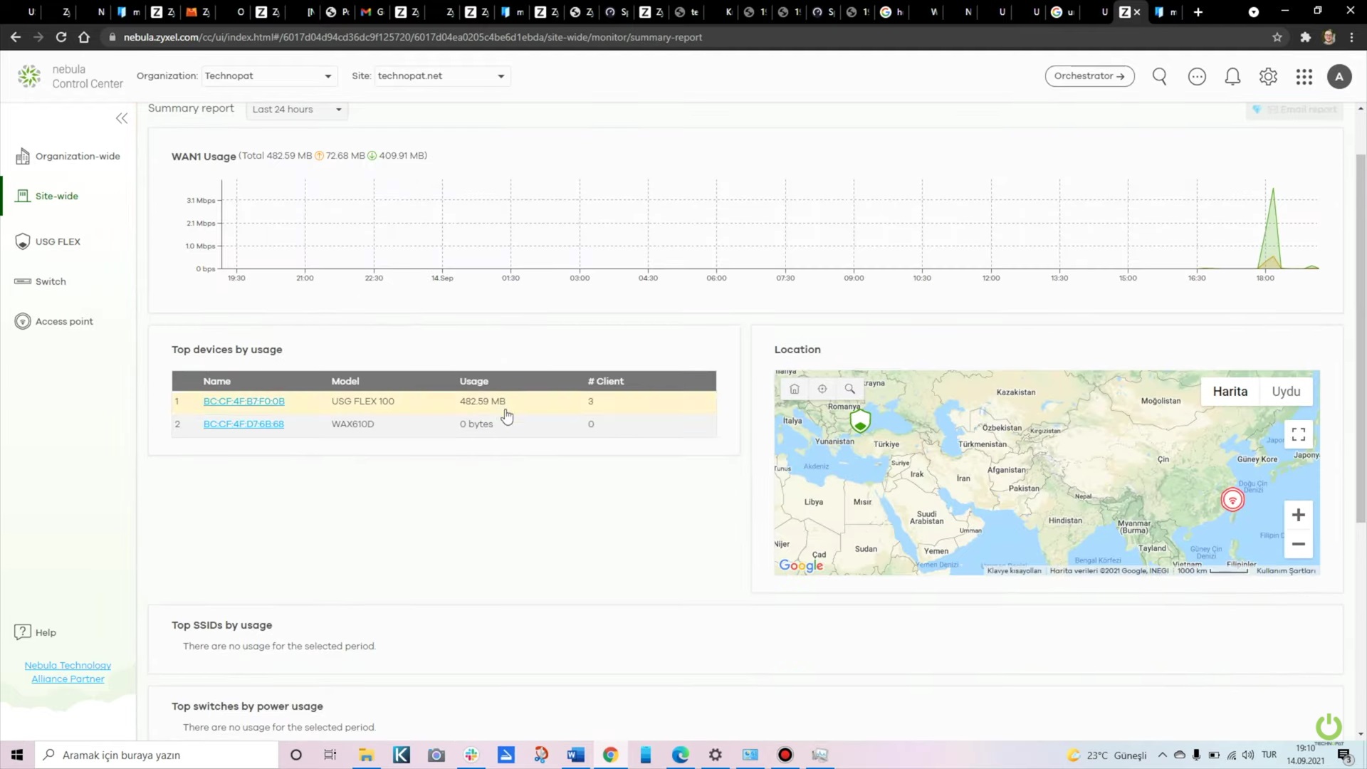 Doğrudan modemimizden çıkan Ethernet kablosunu, kendi güç adaptörünü ve AP’nin Ethernet kablosunu test için Flex 100’e taktık. Ayrıca kurulumda Flex’i Ethernet ile P2 portundan PC’mize bağladık. MyZyxel’i açıp cihaz yönetiminden cihazların MAC adreslerini ve seri numaralarını ekledik. Ardından uzaktan yönetim için Nebula’ya giriş yaptık. Cihazların Nebula’da belirmesi biraz zaman alıyor, verilerin toplanıp raporların belirmesi ise biraz daha uzun kullanmayı gerektiriyor.