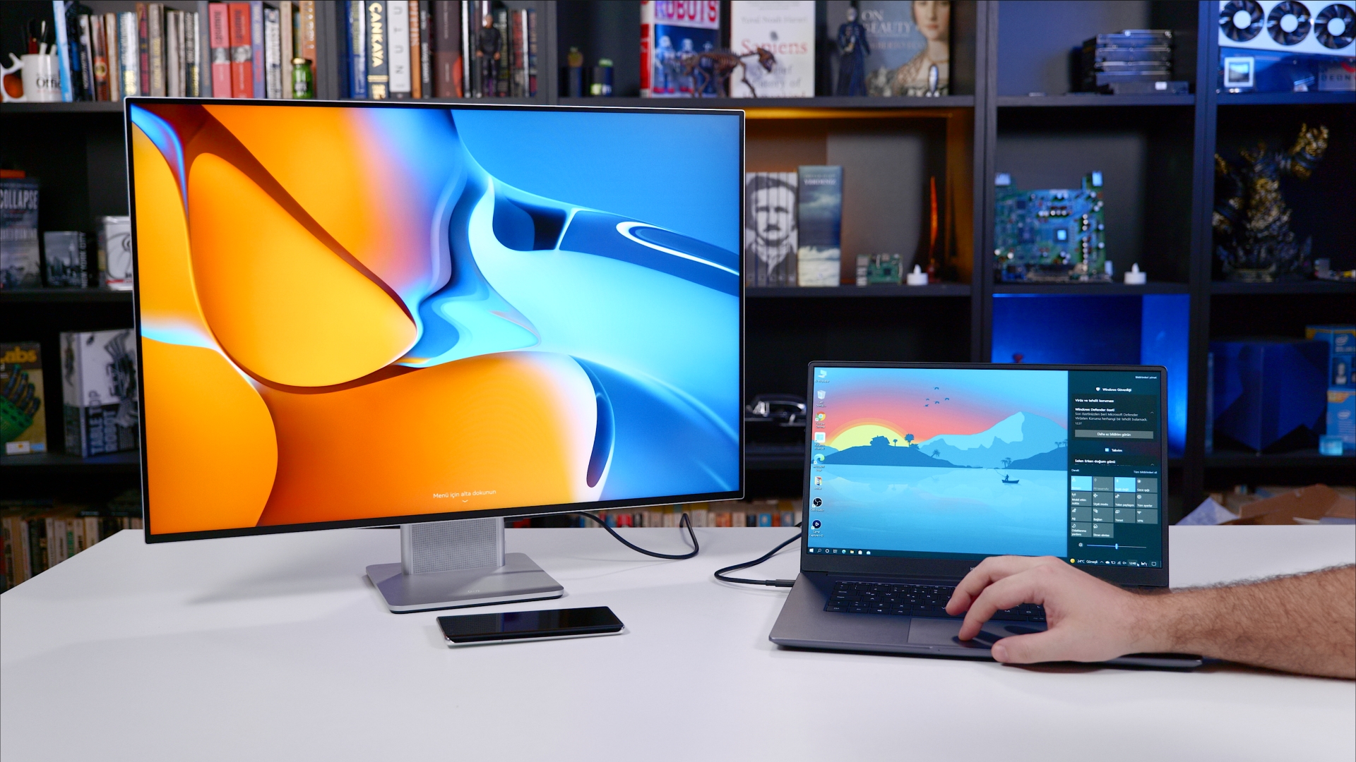 Telefonunuzu ya da dizüstü bilgisayarınızı kablosuz olarak ya da USB Type-C üzerinden bağlayabildiğiniz yeni nesil bir monitör var karşımızda. Huawei MateView her türden bilgisayar ile çalışacak şekilde tasarlanmış. Ancak elbette marka kendi cihazları için bazı kolaylıkları da ön plana çıkartıyor.