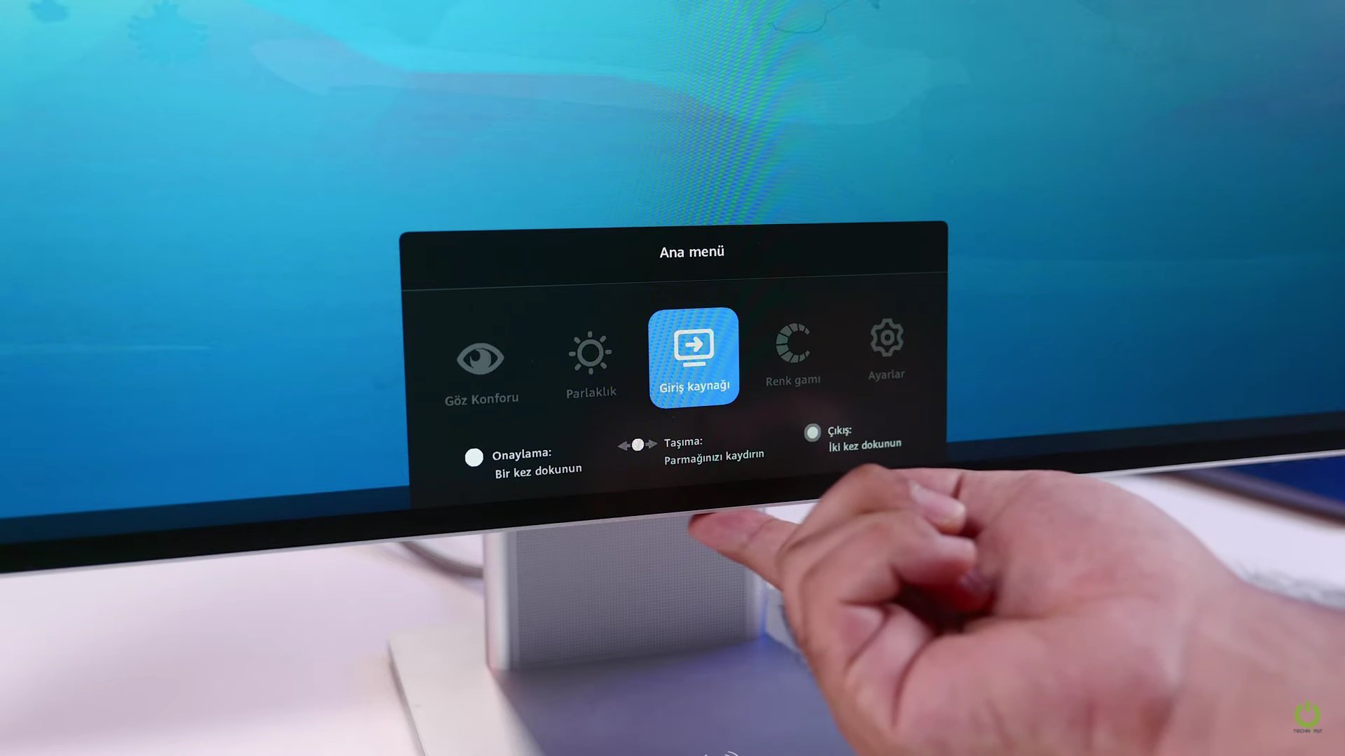 OSD yani ayar menüsü de dokunmatik bir ekran altı kontrol şemasına sahip. Bir kez dokunarak ilerliyor, sağa ve sola kaydırarak geziyor, iki kez dokunarak bir önceki menüye dönüyorsunuz. Video izlerken dokunduğunuzda doğrudan ses ayarını açıyor ve kaydırarak kolayca sesi kısabiliyorsunuz.