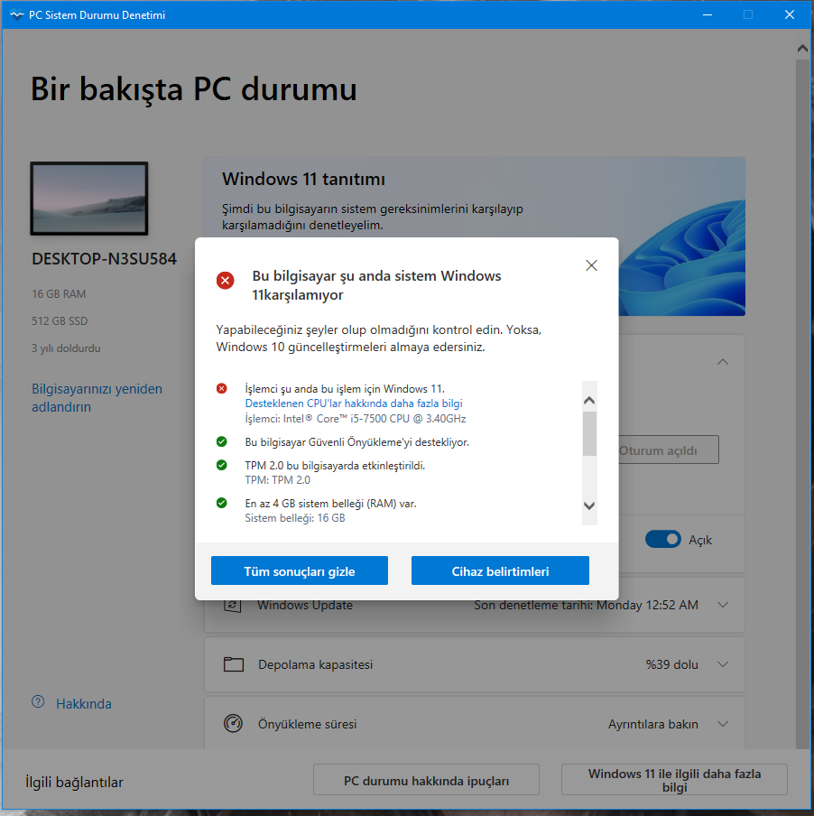 Yani bu durumda, desteklemeyen anakart ve işlemciye Win11 yükleyebilir miyim?