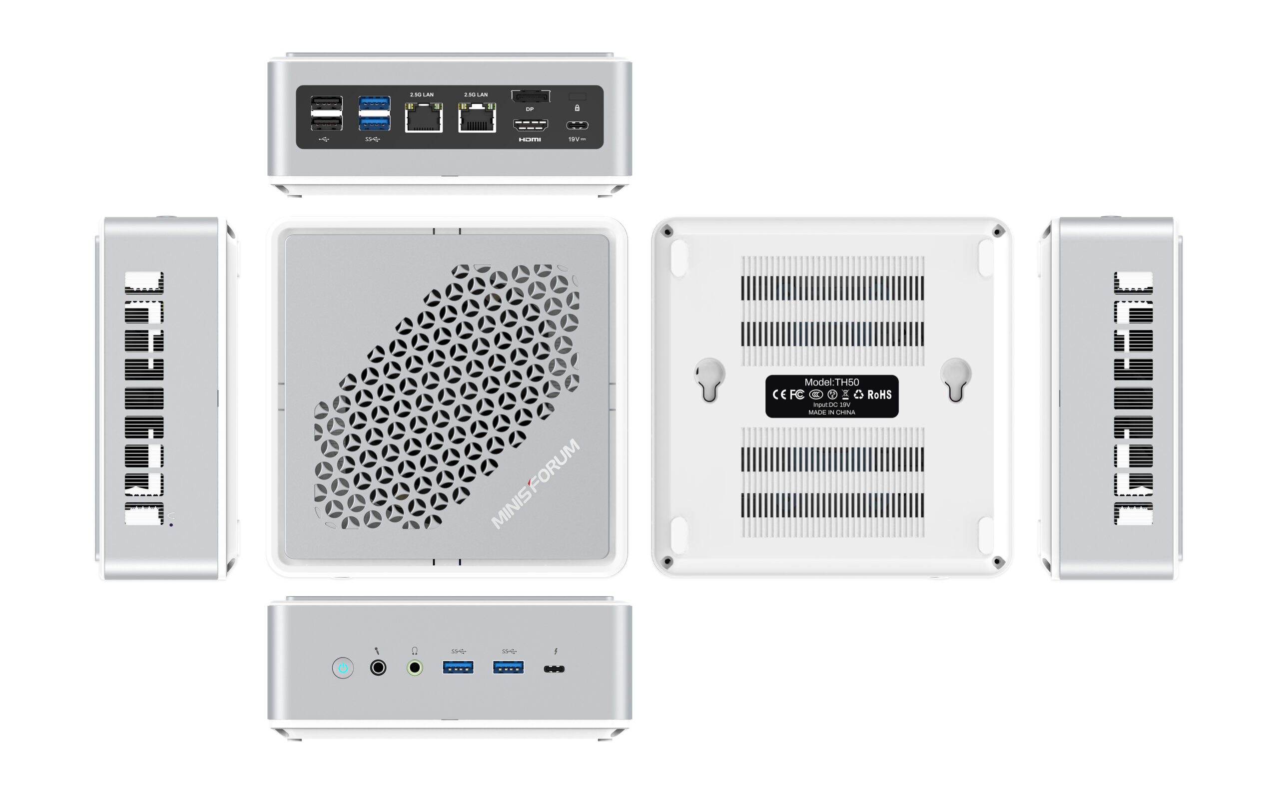 Minisforum Deskmini TH50’nin tasarımı AMD işlemcili HM90 ile oldukça benzer. Giriş/çıkış birimine bakarsak ön tarafta iki USB 3.2 bağlantı noktası, Thunderbolt 4, mikrofon/kulaklık jakı ve güç düğmeleri görünüyor. Arka tarafta ise çift 2.5GbE LAN bağlantı noktası, HDMI, DisplayPort, 2 adet USB 3.2 bağlantı noktası ve 2 adet USB 2.0 bağlantı noktası bulunmakta. Henüz fiyat açıklanmamış olsa da temel yapılandırma için 400-500 dolar arasında bir fiyatlandırma bekleyebiliriz.