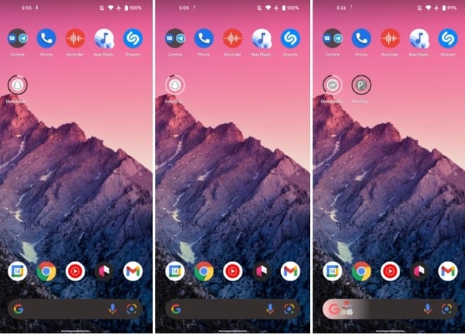 Bu arada bir uygulamayı arama ve yükleme işlemi ise değişmeden kalacak. Play Store, “Yükle” düğmesine dokunduktan hemen sonra uygulama simgesinin Siyah Beyaz sürümünü ana ekrana ekleyecek. Bu simge, kurulum ilerledikçe doldurulacak bir halkanın içine alınacak. İndirme devam ederken uygulama simgesi “İndiriliyor” olarak etiketlenecek. Sonunda indirme tamamlandığında ve kurulum gerçekleşirken etiket “Yükleniyor” olarak değişecek. Başarılı kurulumda, uygulama simgesini orijinal renklerinde göreceksiniz ve etiket, uygulamanın adıyla değişecek. İndirmeye birden fazla uygulama koymanız durumunda ise her defasında bir uygulama indirmeye devam edecek ve diğerleri ana ekranda “Beklemede” olarak görünecek.
