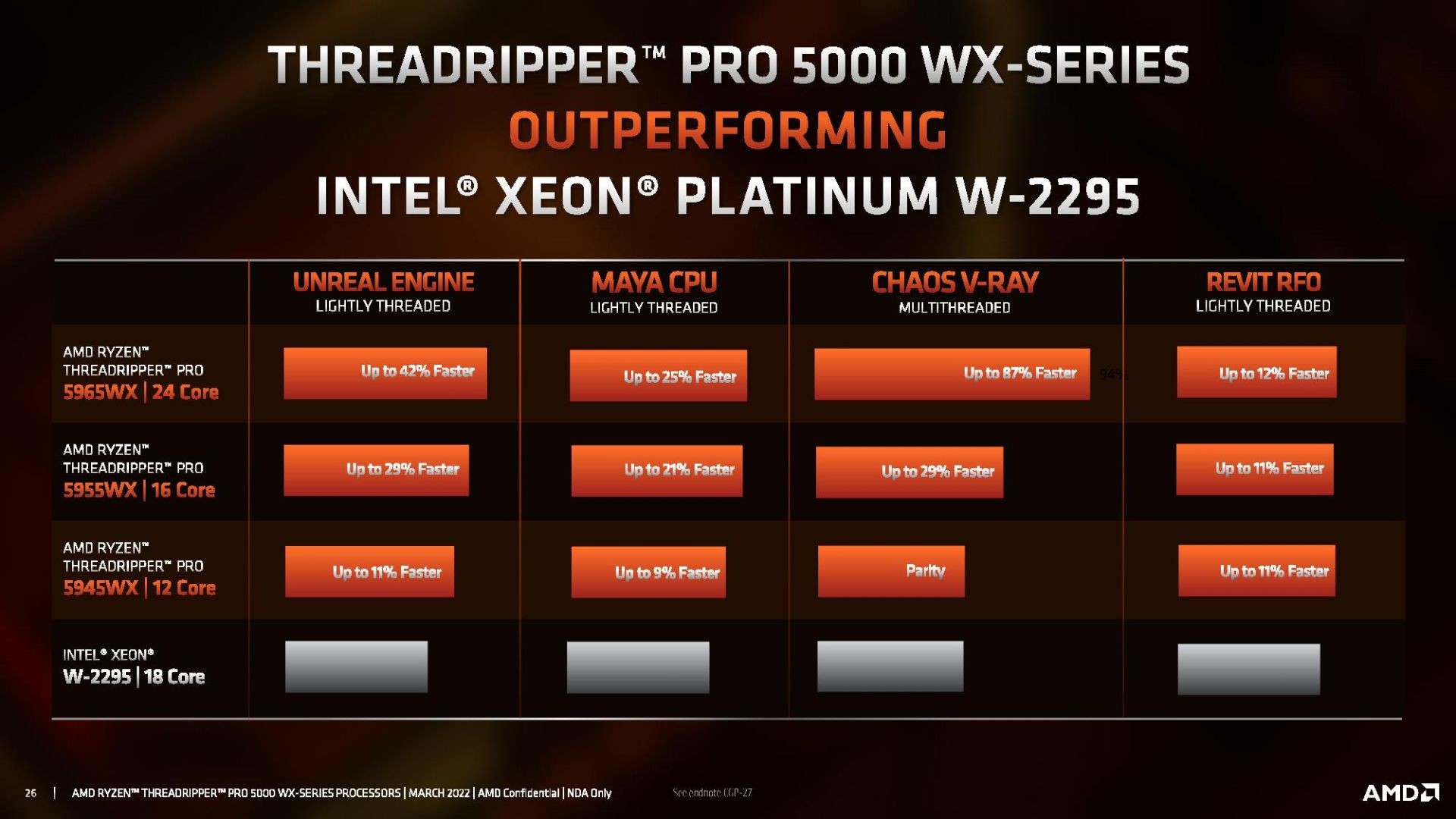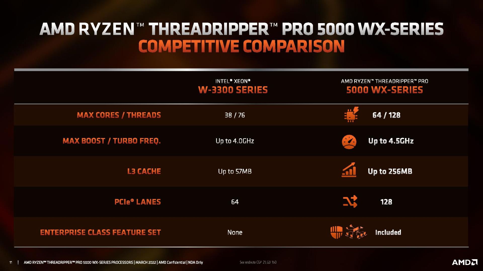 AMD Ryzen Threadripper Pro 5000 WX Serisi ve Intel Xeon W Karşılaştırmaları