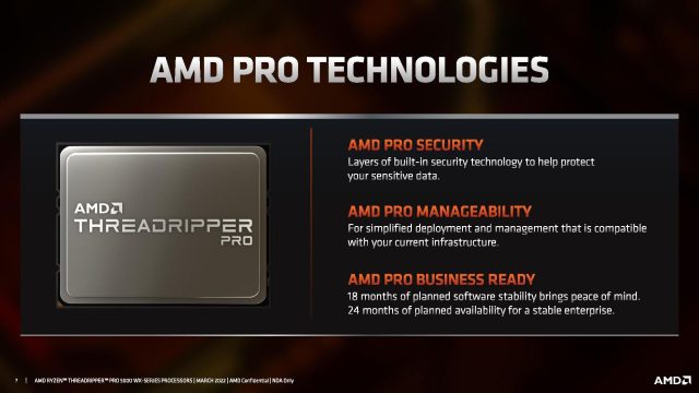 Yeni Threadripper serisi, iş istasyonlarına biraz değiştirilmiş bir EPYC Milan tasarımı getiriyor ve 2020’nin ortalarından bu yana iş istasyonu segmentine hakim olan Zen 2 ile güçlendirilmiş Threadripper Pro 3000 serisi için bir yenileme görevi görüyor. Aslında AMD, Kuzey Amerika iş istasyonu pazarının (IDC) %60’ını ele geçirdiğini iddia ediyor. Yeni çipler, Intel’in rakip yongalarının eksik olduğu bir alan olan AMD’nin Pro Güvenlik, Yönetilebilirlik ve İşe Hazır paketleri (18 aylık yazılım kararlılığı, 2 yıllık yonga kullanılabilirliği) gibi öncekilerle aynı Pro özelliklerinin tümünü taşıyor.