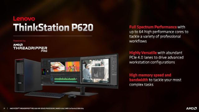 Pro 5000 WX işlemciler, iş istasyonları için geliştirilen ve 38 çekirdeğe kadar çıkan Intel’in Ice Lake Xeon W-3300 serisi ile rekabete tutuşacak. AMD’nin önceki nesil Pro sürümünde gördüğümüz gibi, Threadripper Pro 5000 yongalar ilk olarak Lenovo’nun yenilenmiş ThinkStation P620 iş istasyonları serisinde piyasaya çıkacak. Lenovo ayrıca geliştirilmekte olan bir dizi Ryzen 6000 tabanlı mobil iş istasyonuna sahip, ancak şirket henüz her iki platform için de ayrıntıları paylaşmadı. Bu bağlamda detayların önümüzdeki haftalarda ortaya çıkması bekleniyor.
