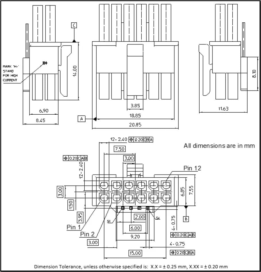 12VHPWR konnektörünün pinleri, dört duyu pini hariç diğer konnektörler için gerekli olan 18AWG yerine 16AWG göstergelerini kullanmak zorunda. Yan bant sinyal pinleri 28AWG göstergelerini kullanmalı. 12VHPWR konektörü, maksimum 450W veya daha az güce sahip PSU’lar için isteğe bağlı ve >450W PSU’lar için gerekli.