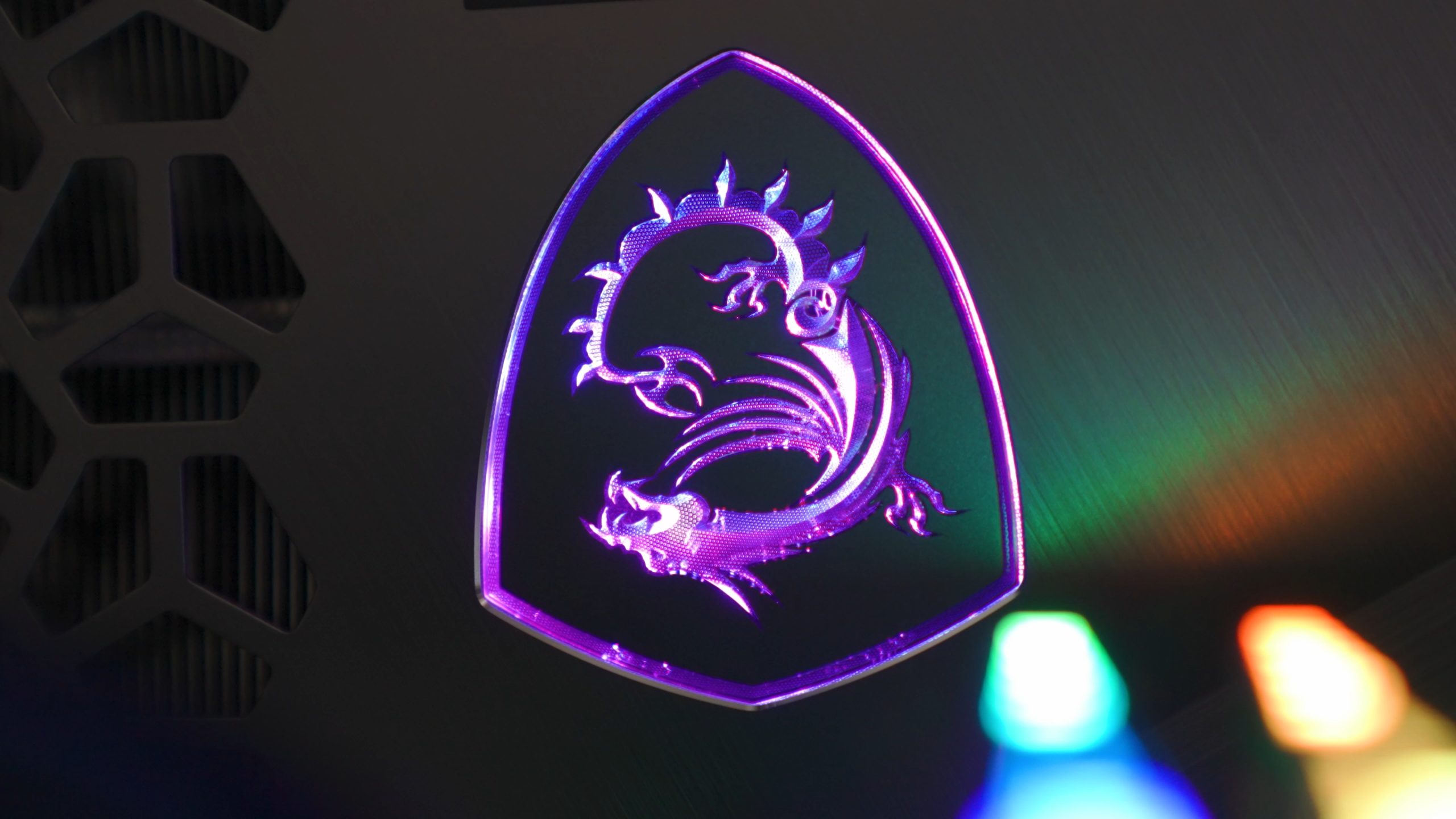 Fanların kenarları, yan kısım ve arka plakada RGB aydınlatma bulunuyor. Arka plaka da yine fırçalanmış alüminyum yüzeye sahip ve burada RGB aydınlatmalı büyük bir MSI logosu görüyoruz.
