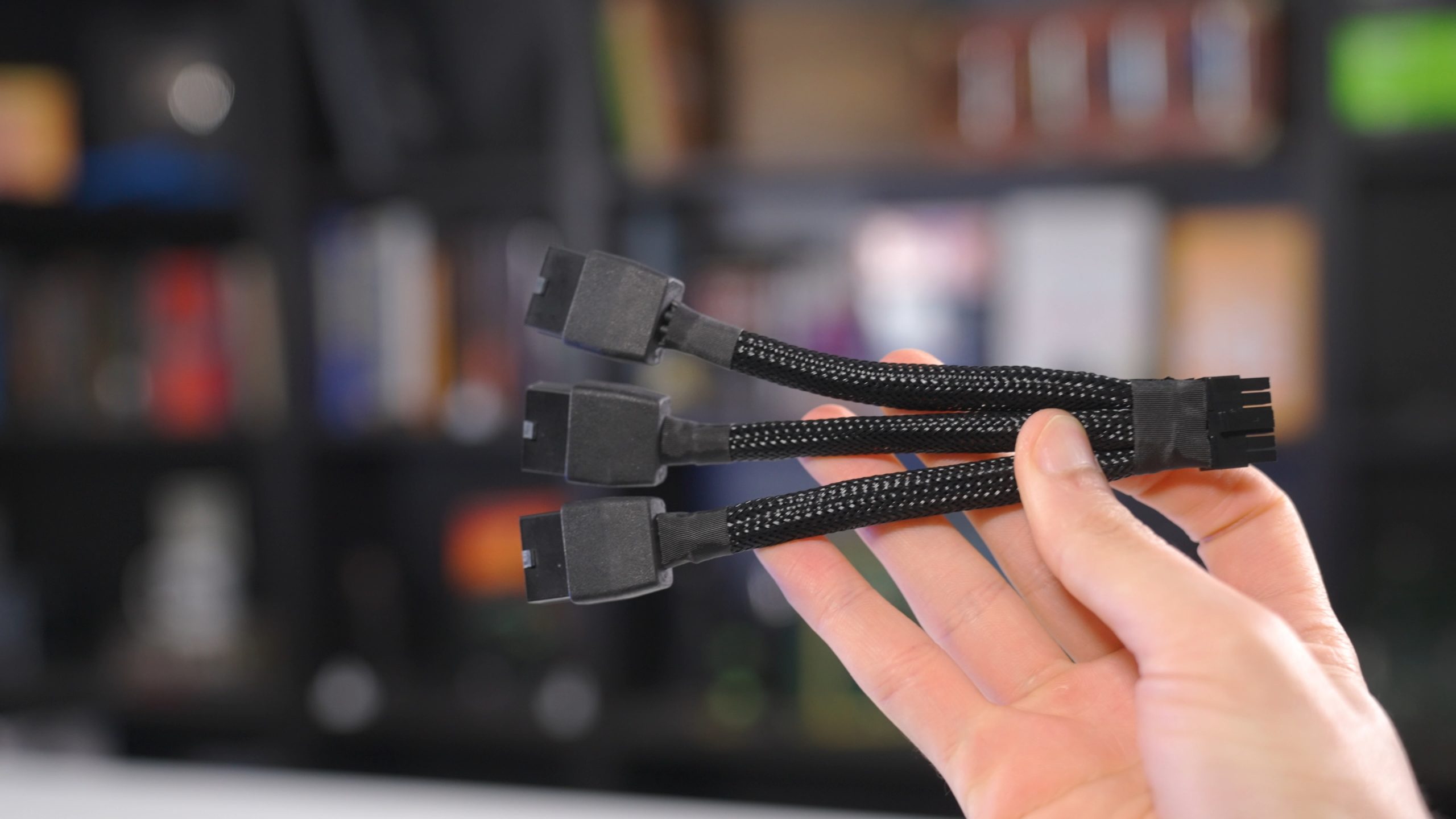 Nvidia’nın mini 12 pinli güç kablosu bu kartta da varlığını koruyor. 3090’dan farklı olan şeyse kutudan çıkan 12 pinli kablonun diğer ucunda 2 değil 3 8 pinli PCI-Express güç bağlantısı var.