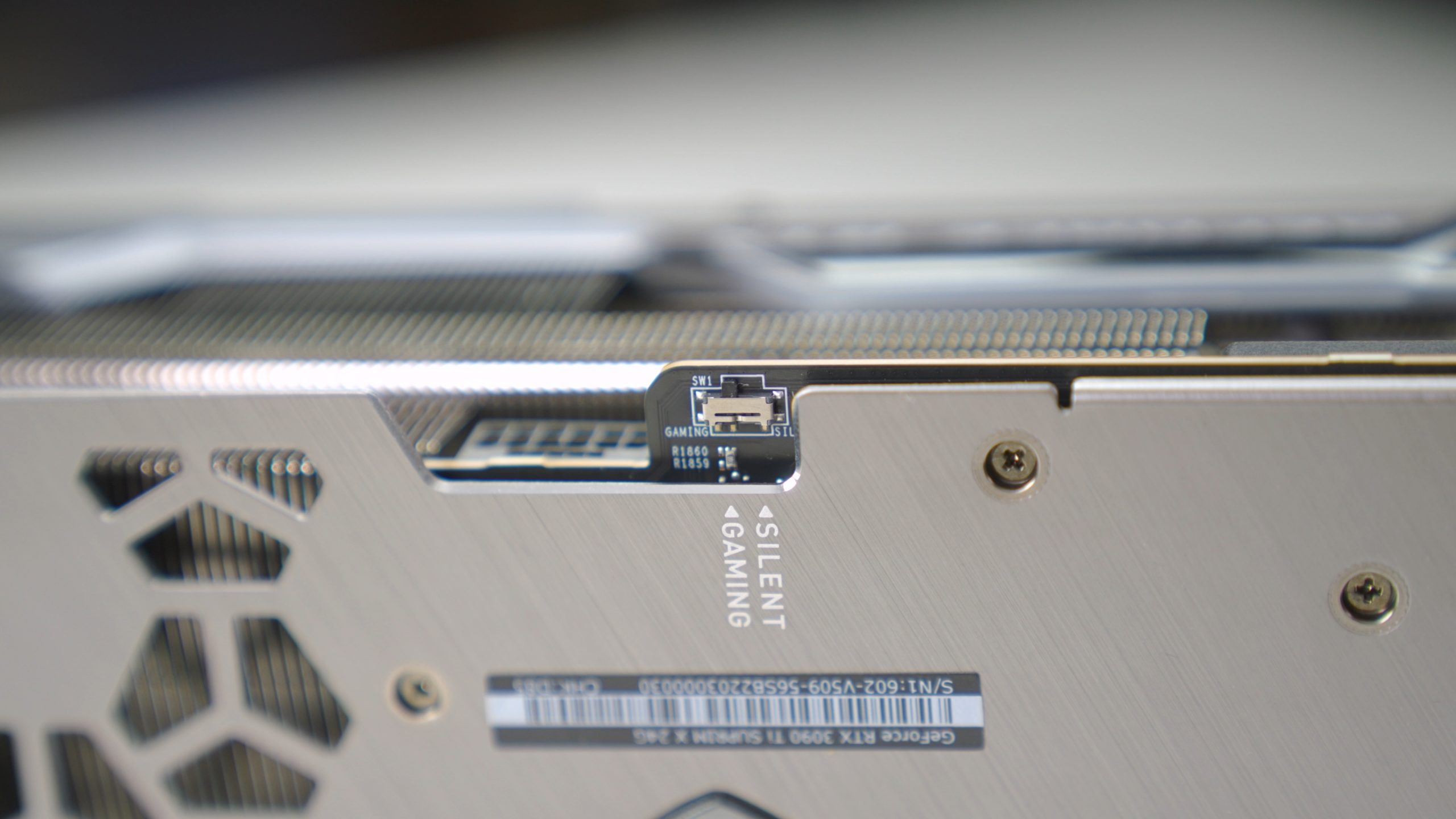 Kart üzerinde bir de sessiz mod ile oyun modu arasında seçim yapmanızı sağlayan anahtar var. Bu mod çalışma frekanslarını değiştirmiyor sadece fan eğrisi üzerinde oynama yaparak kartın yük altındaki gürültü değerlerini etkiliyor.