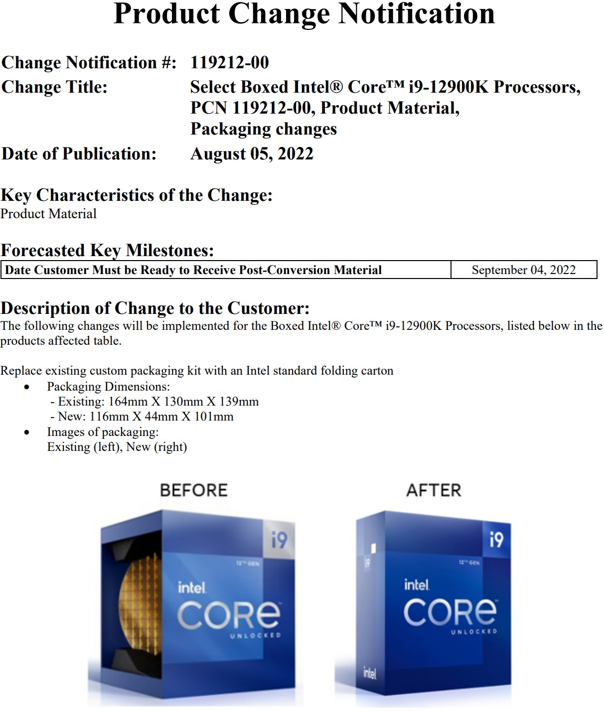 Intel, üst düzey masaüstü işlemcisi 12. Nesil Core i9-12900K ve üç yıl önceki HEDT amiral gemisi Core i9-10980XE için “egzotik” ambalajlar hazırlamıştı. Bu kutuları rafa kaldırmaya karar veren Intel, her CPU modelinin ambalajını standart muadilleriyle aynı olacak şekilde değiştirecek. Şirket bu değişiklikleri 4 Eylül’e kadar uygulamaya başlayacak.