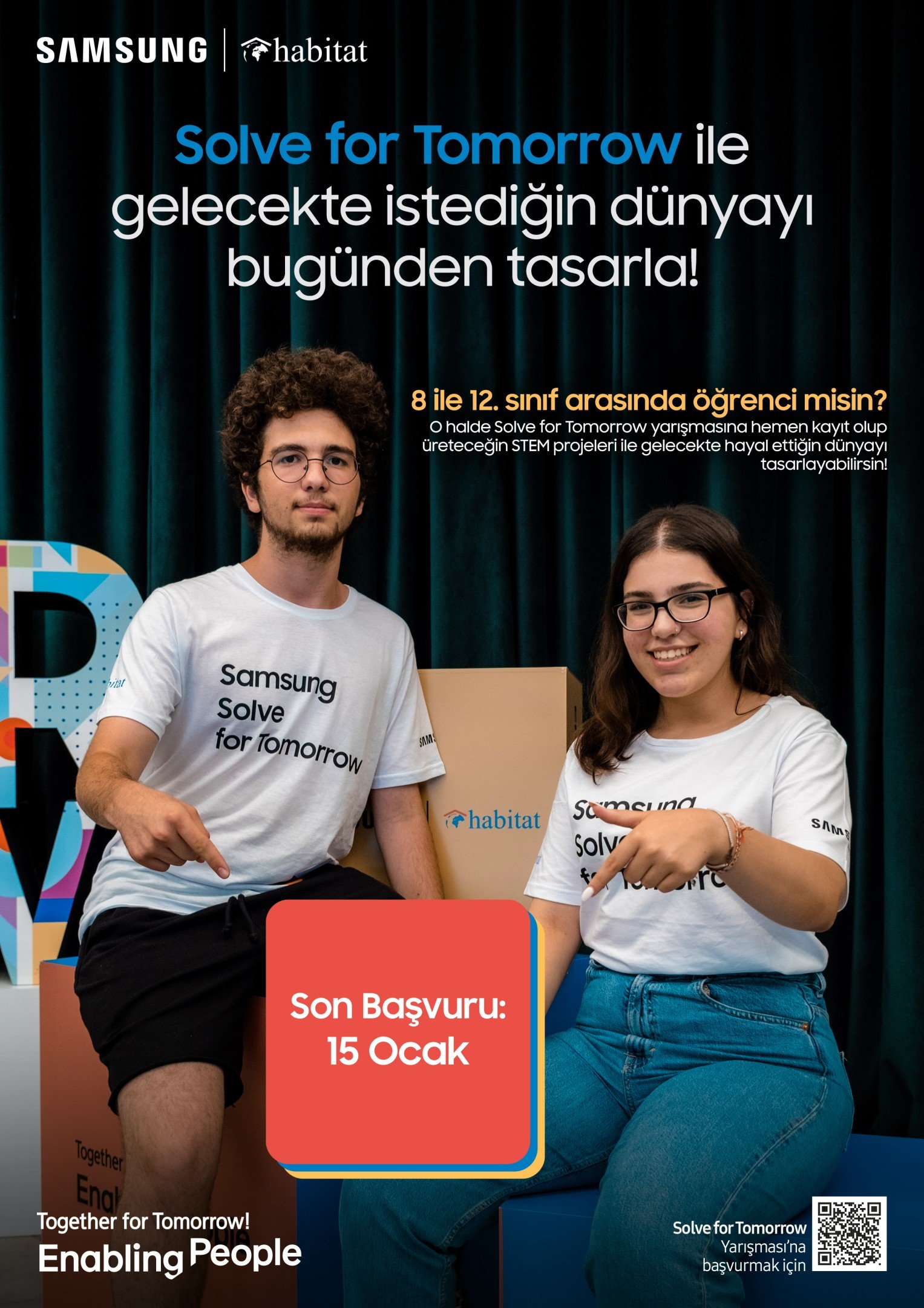 Samsung’un 2010 yılında küresel çapta hayata geçirdiği “Solve for Tomorrow” programı, toplumun en acil sorunlarını çözmeye yönelik toplumsal inovasyon fikirlerinin geliştirilmesine zemin hazırlıyor. STEM eğitimine olan ilgiyi ve bu alandaki yeterliliği artırmak için tasarlanan program yaratıcı çözümler bulmak ve toplumda yaşanan zorlukları ve riskleri ortadan kaldırmak için gençleri uygulamaya geçmeyi teşvik ediyor. Bu program katılımcıları, içinde yaşadıkları ortam hakkında derinlemesine bir kavrayış geliştirmelerinin yanı sıra iş gücünün ve toplumun geleceğini belirleyecek yetenekler olan eleştirel ve yaratıcı düşünme, iletişim kurma ve iş birliği yapma becerilerini de geliştiriyor. Öğrenciler yarışmaya, ‘İklim Krizi’ (Karbon Emisyonun Azaltılması), ‘Sürdürülebilir Atık Yönetimi’ (Geri Dönüşüm), ‘Yenilenebilir Enerji’ ve ‘Akıllı Şehir Uygulamaları’ konularına çözüm üreten projeleriyle başvurabiliyorlar.