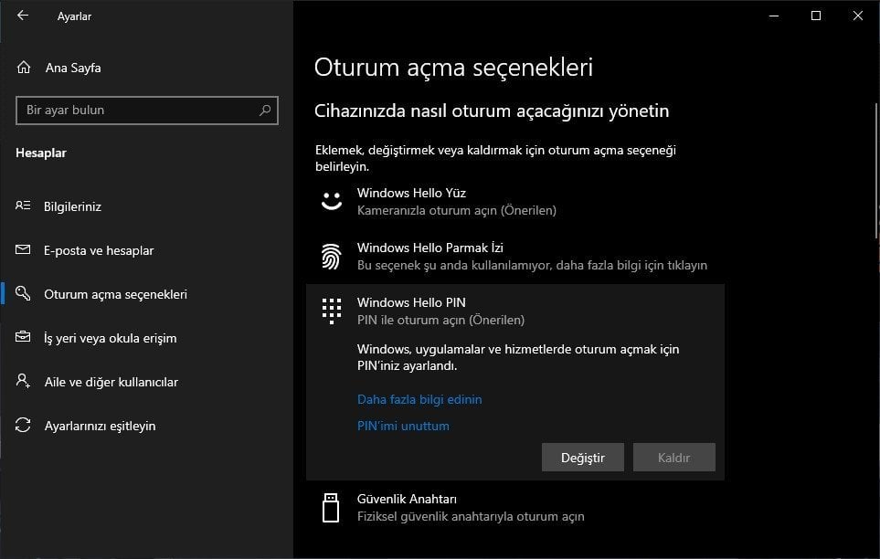 Bilgisayarınızn açılırken PIN yerine şifre varsa bunu kaldırmak için de Ayarlar yolunu izleyebilirsiniz.