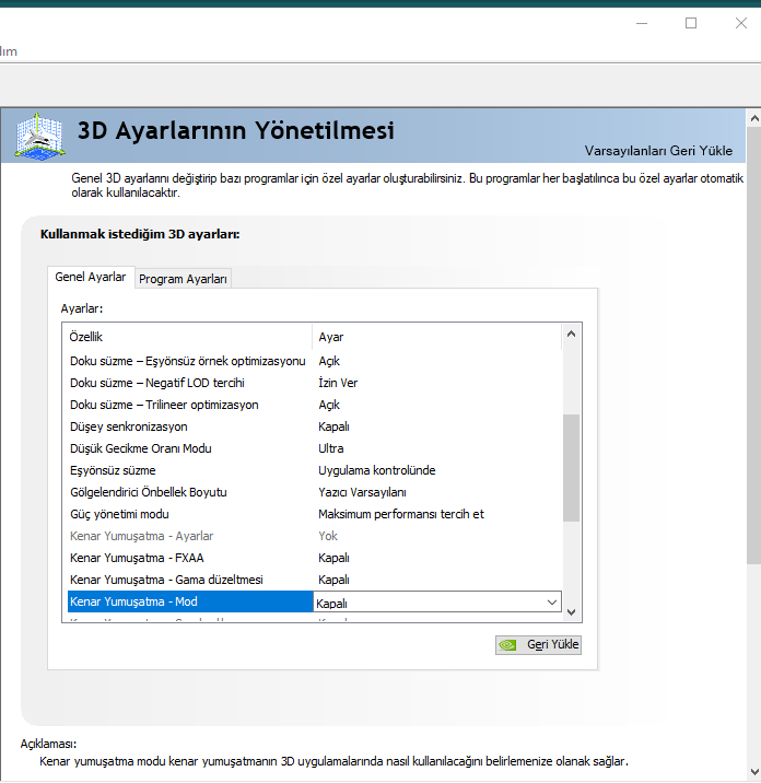 NVIDIA Kontrol Paneli Ayarları