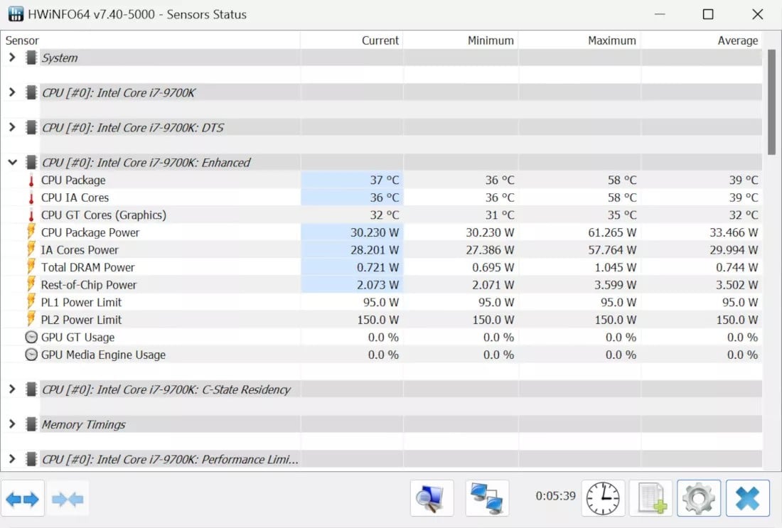 Yeni yöntemlere geçecek olursak, CPU tüketimini izlemek ve görüntülemek için daha iyi bir yardımcı araç var: HWiNFO64. Ücretsiz uygulama, güç değerlerinin yanı sıra bilgisayarınız hakkındaki birçok bilgiyi detaylı bir şekilde sunabiliyor, sistemdeki neredeyse her sensöre ait verileri sergileyebiliyor.