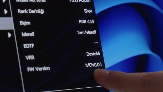 Teste başlamadan önce monitörünüzün hangi firmware sürümünde olduğunu görebilirsiniz. Bunun için monitörün OSD menüsü içerisinden “Bilgi” penceresine gelmeniz yeterli.