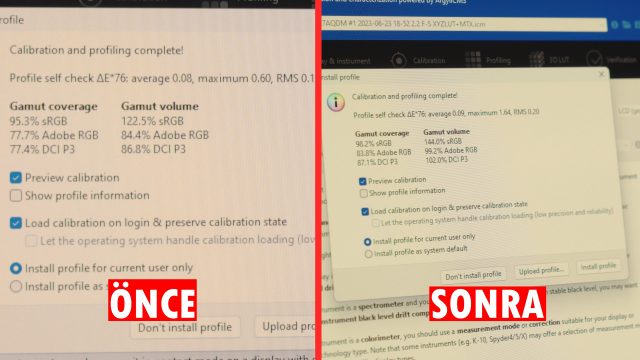 Güncellemeyi yaptıktan sonra monitörü HDR moddayken tekrar renk ölçüm testine tabi tutuyoruz.