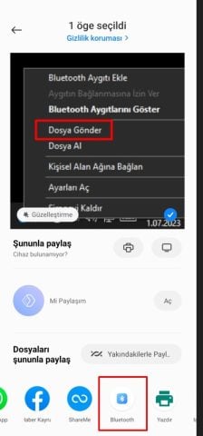 • Telefonunuzdan paylaşılacak dosyayı seçin ve Paylaş’a tıklayın. Elbette Bluetooth seçeneğini seçiyoruz.